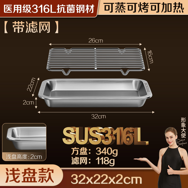• [특대모델] 316L 항균건강소재 32cmX22cm 얕은접시 2cm + 필터