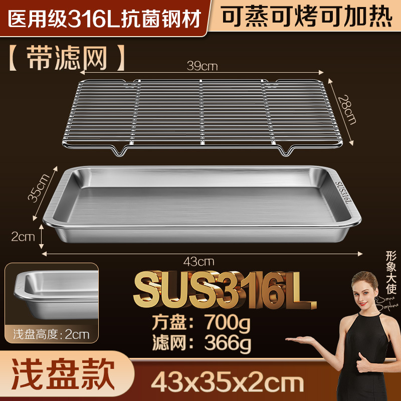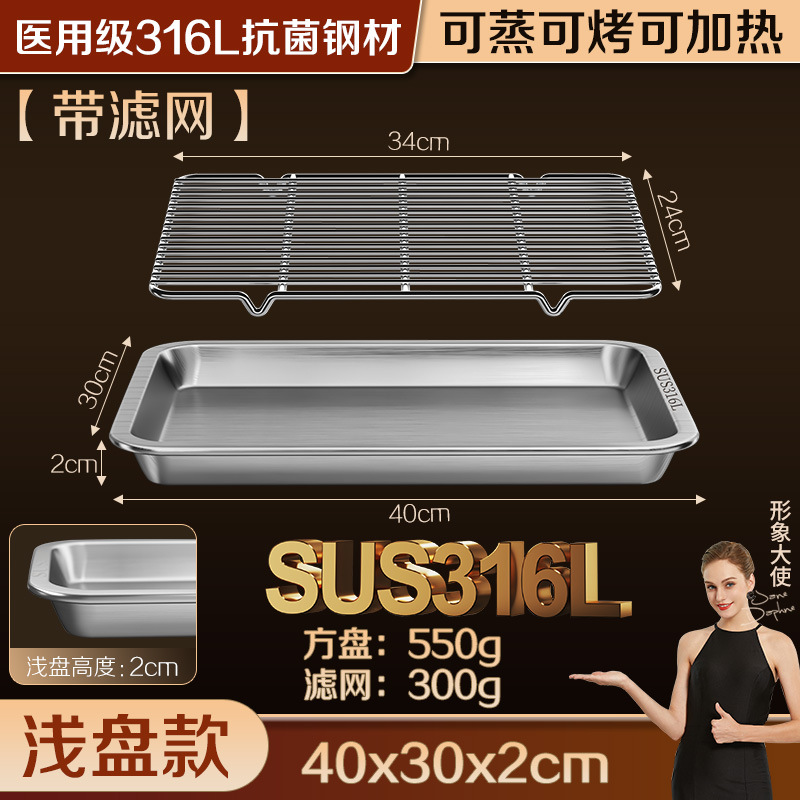 • [특대모델] 316L 항균건강소재 40cmX30cm 얕은접시 2cm + 필터