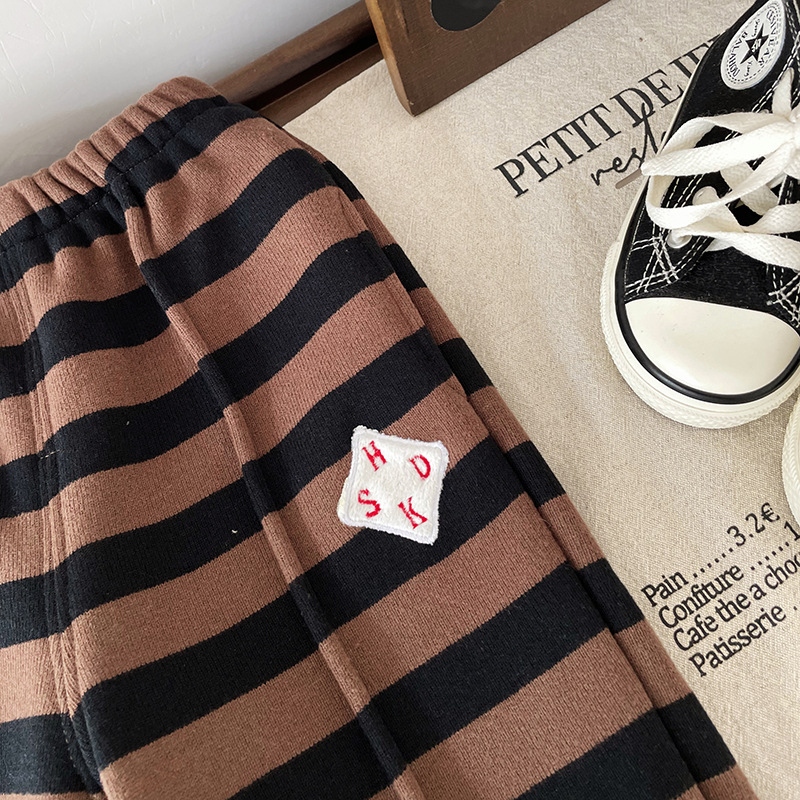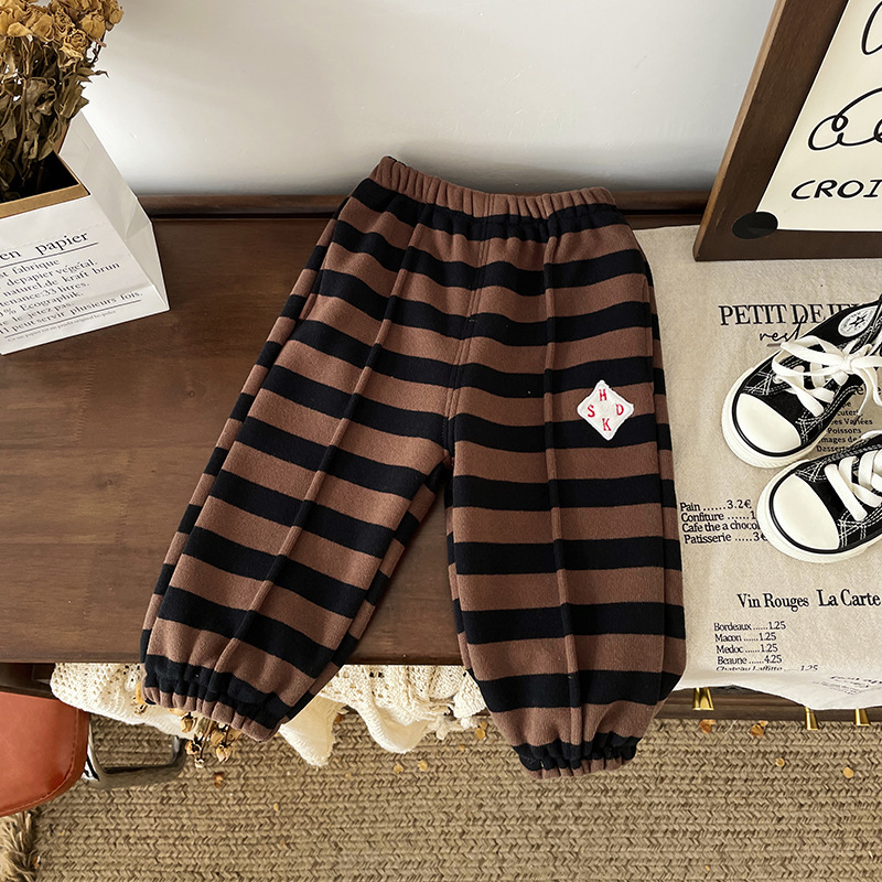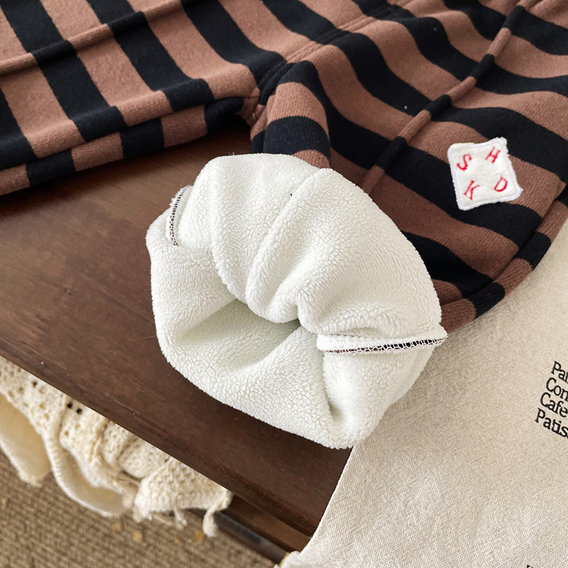 [재고] 어린이 기모 바지 2024 가을 겨울 아기 발가락 바지 스트라이프 바지 QK247644