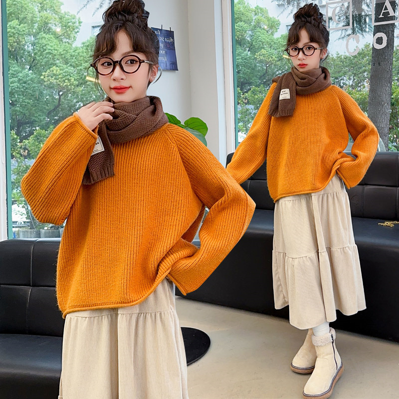 여자 스웨터 2024 새로운 가을 겨울 니트 스웨터 소녀 겨울 옷 풀오버 베이스 셔츠 어린이 한국 가을 옷