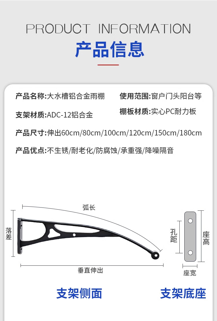 공장 도매 알루미늄 합금 캐노피 대형 싱크대 홈 처마 테라스 발코니 창 파티오 도어 헤드 차양스토어 가기