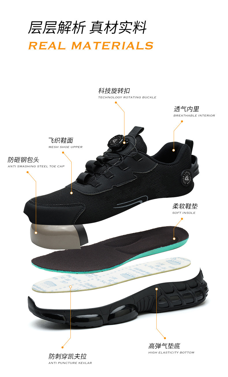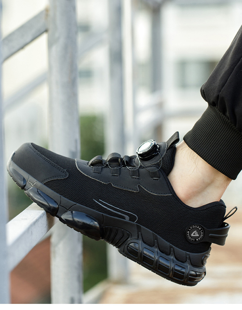 남성용 크로스보더 회전 버튼 안전화, 충격 방지, 펑크 방지, 가볍고 통기성, 내마모성, 미끄럼 방지, 작업장 보호 작업화스토어 가기
