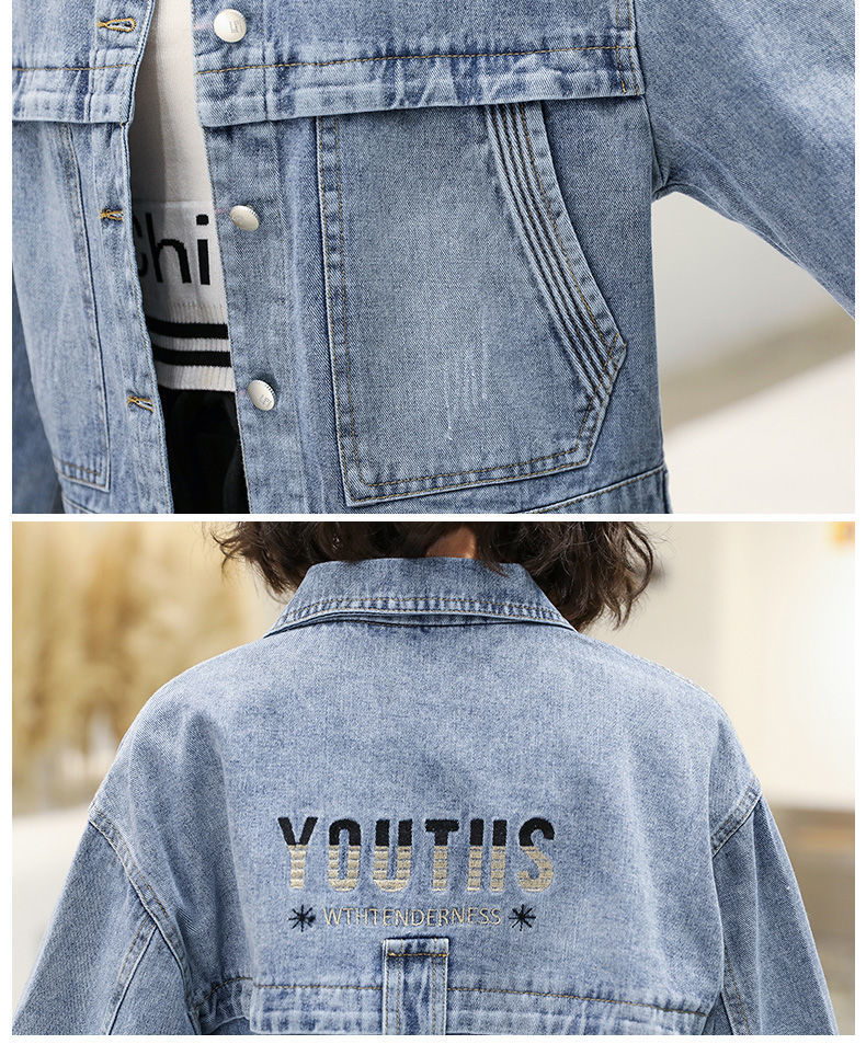 편지 자수 데님 재킷 여성의 2024 봄과 가을 새로운 한국 느슨한 패션 서양식 짧은 재킷 트렌디 탑