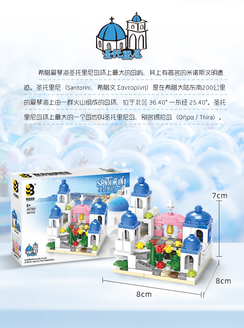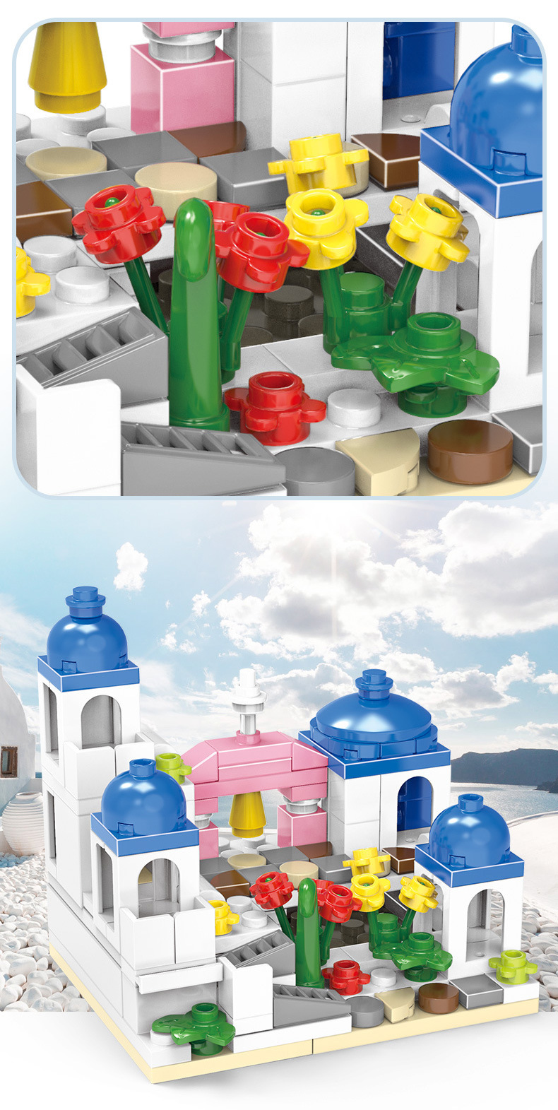 유나이티드 크리에이티브 신제품 JKC7625 산토리니 성 조립 빌딩 블록 소녀 시리즈 교육 완구 도매스토어 가기