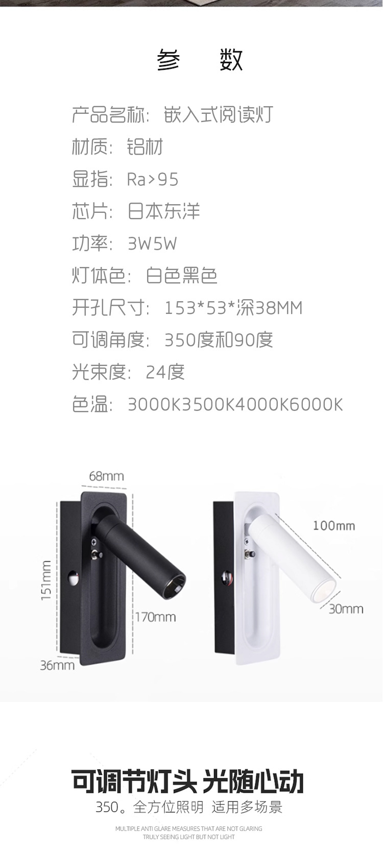 아투어 체인 호텔 게스트 침실 스터디 룸 회전식 침대 옆 독서 장식 실과 같은 스타일의 내장 벽 램프