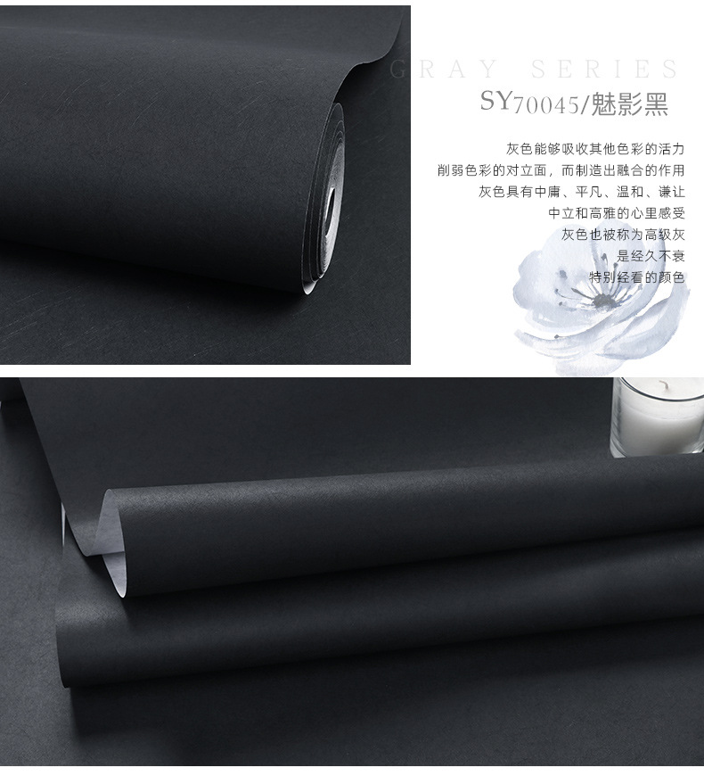 순색 무지 부직포 연회색 검정색 벽지 비접착식 거실 침실 벽지 배경벽 신제품