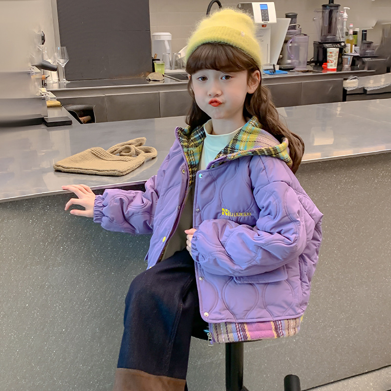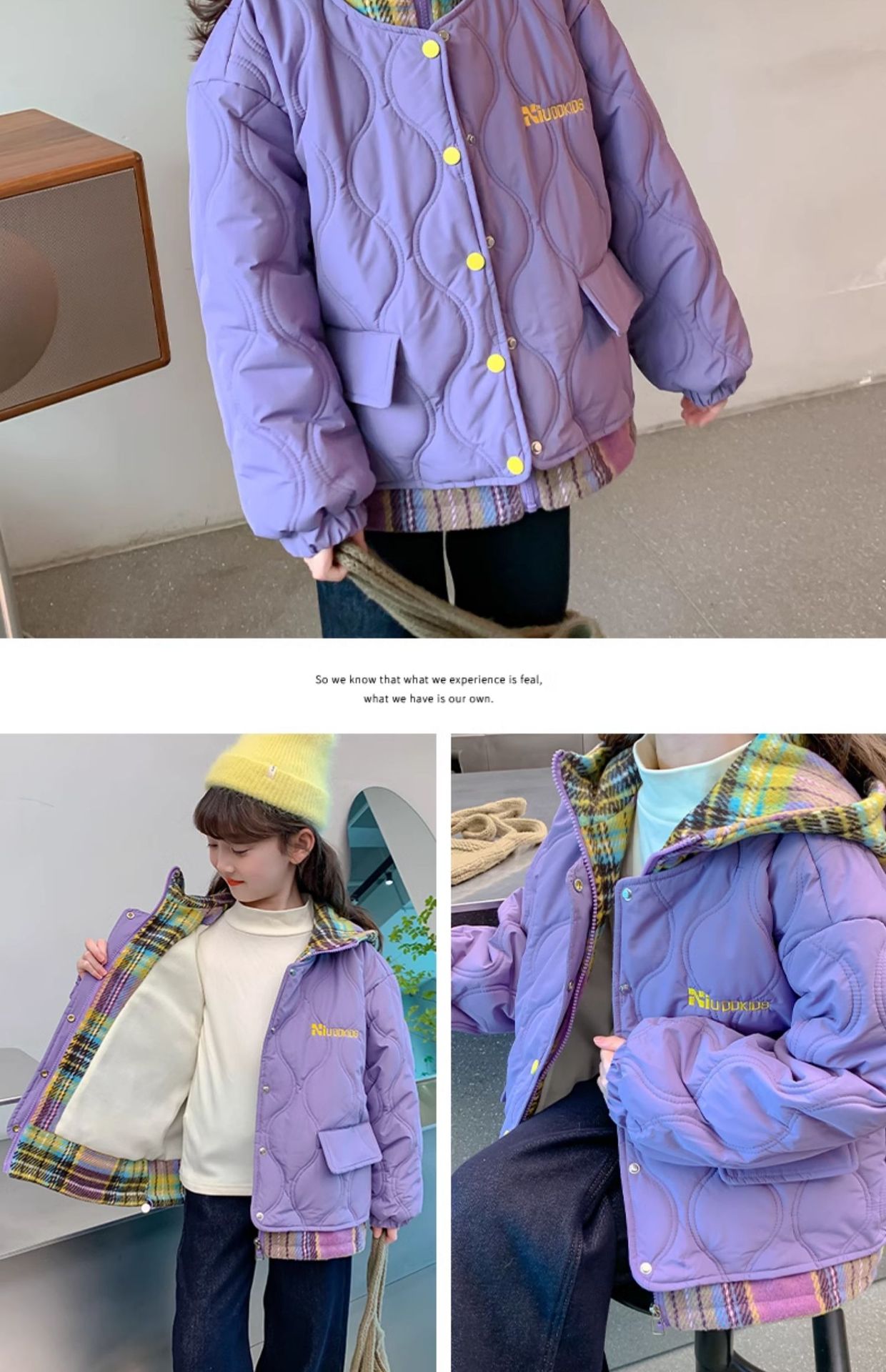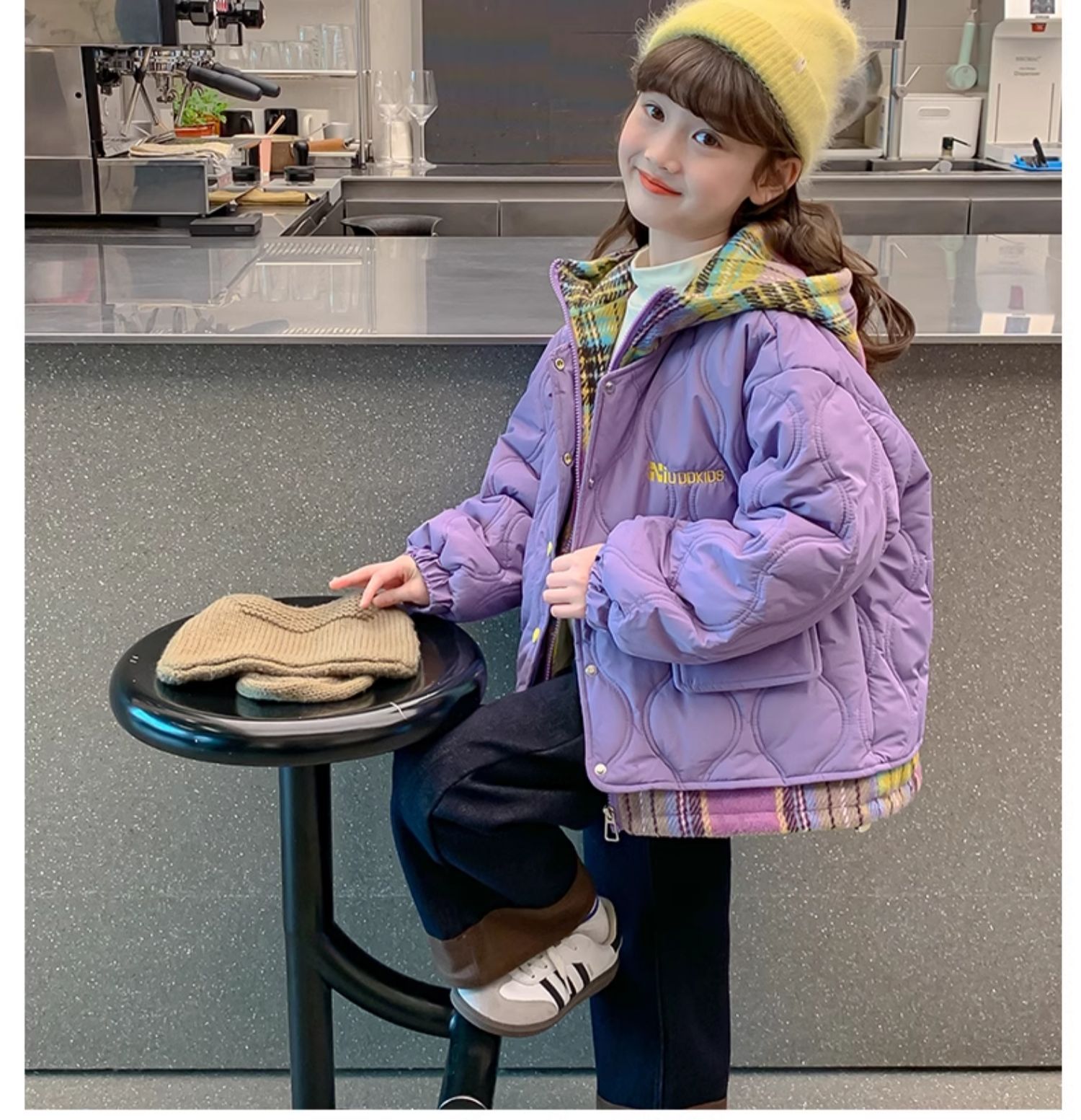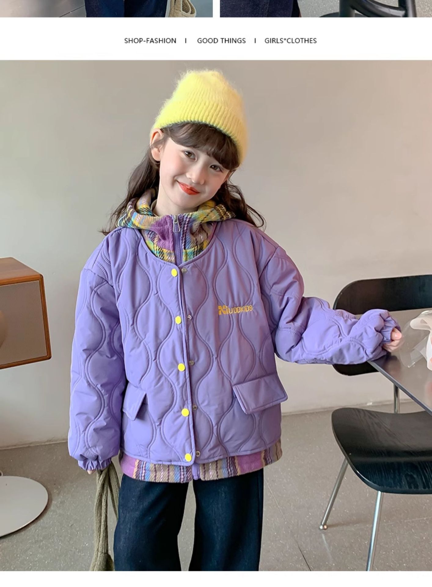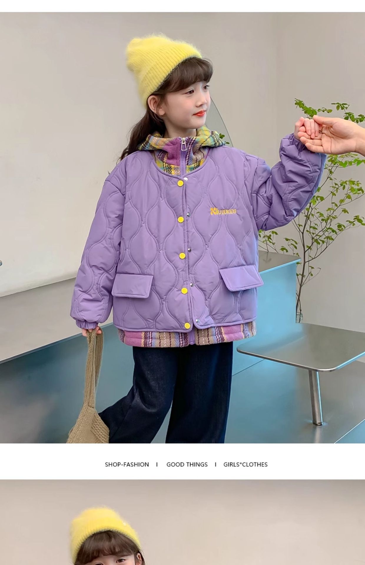 소녀의 코트 가을과 겨울 2024 새로운 서양식 어린이 겨울 코트 두꺼운 면화 패딩 소녀의 가짜 투피스 탑스토어 가기