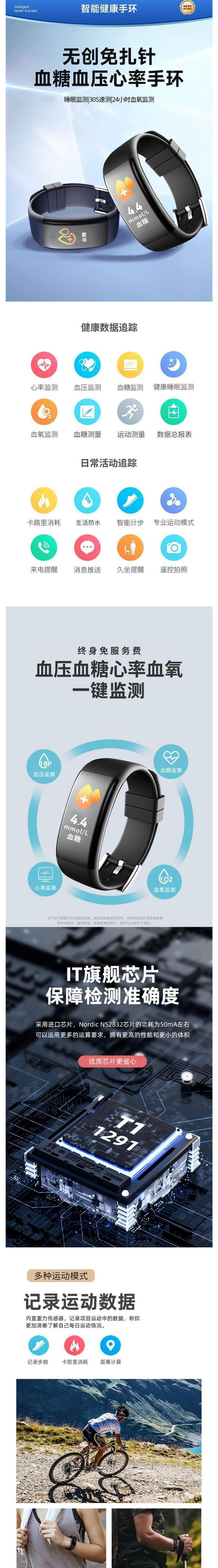 지능형 바늘없는 혈당 측정기 컬러 스크린 팔찌 자동 비 침습적 혈당 시계 혈압, 혈액 산소, 심박수