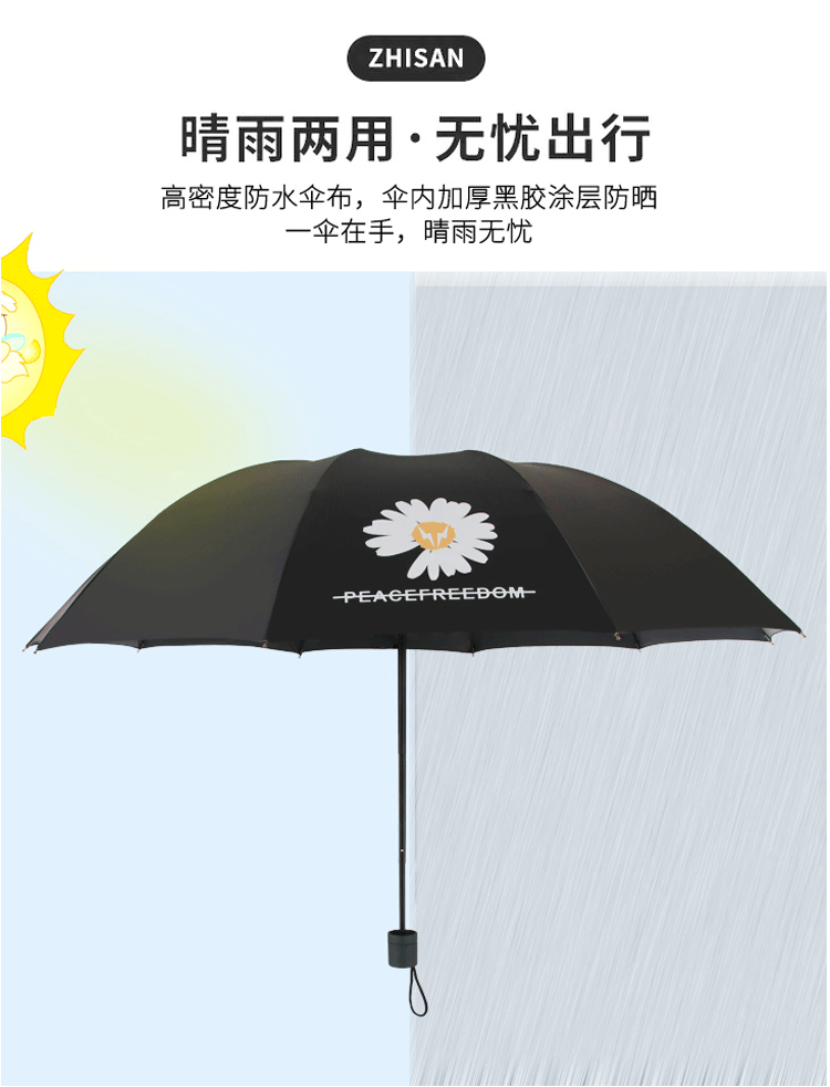 3 배 수동 우산 8-뼈 데이지 우산 유니섹스 접는 태양 보호 UV 보호 햇빛과 비 보호 이중 사용 재고