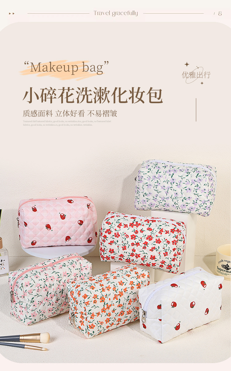 인스 스타일 꽃무늬 화장품 가방 대용량 화장품 수납 가방 정교하고 휴대 가능한 출장 여행 세면 가방