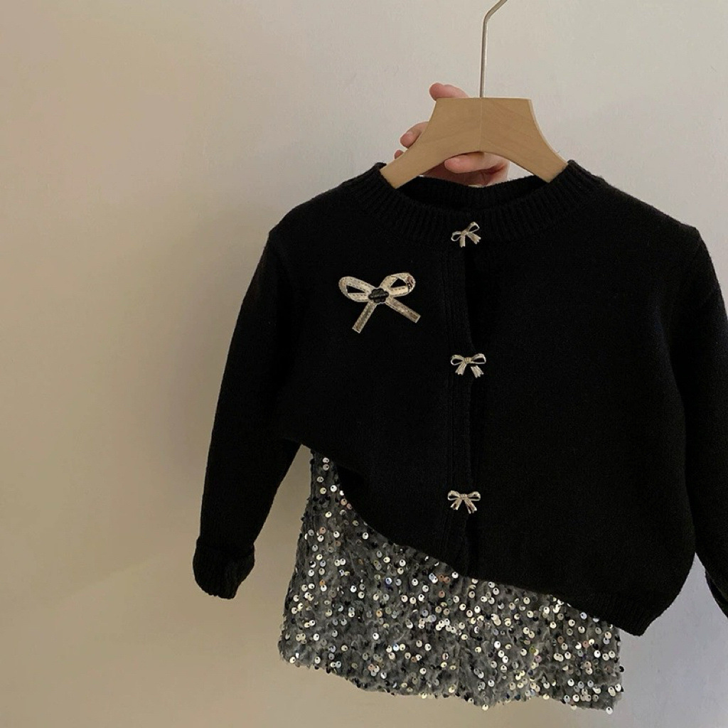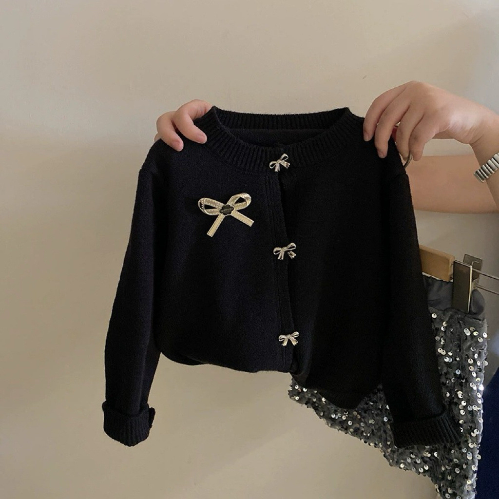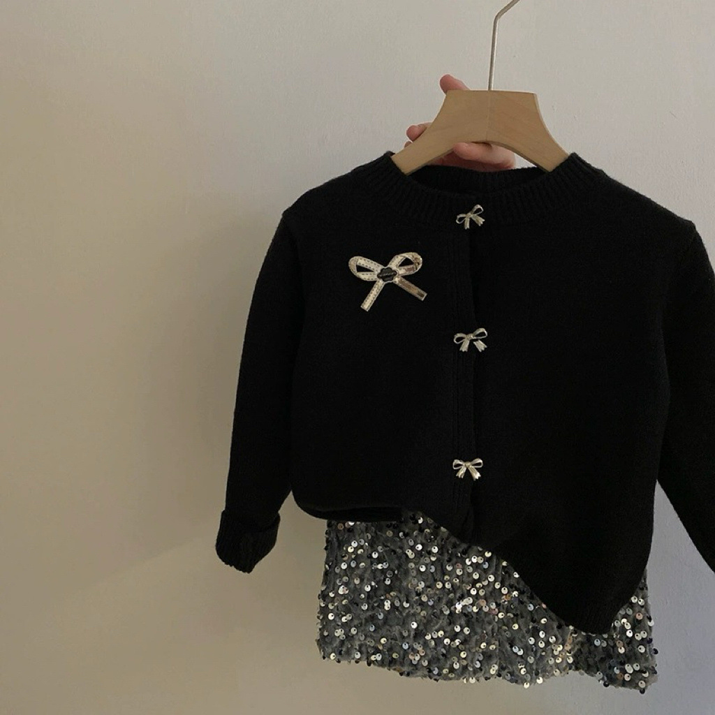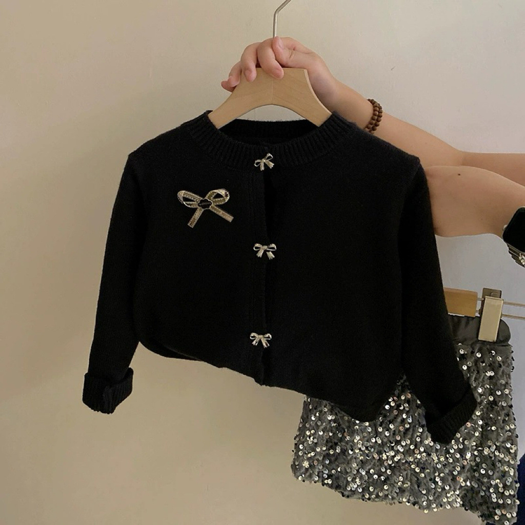 2024 가을 겨울 서양 패션 아기 한국 니트 카디건 따뜻한 탑 걸스 활 스웨터 카디건