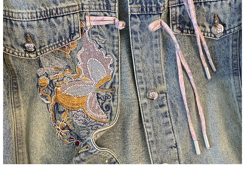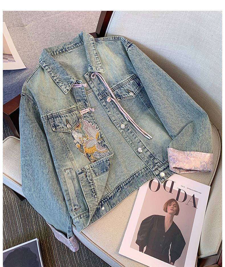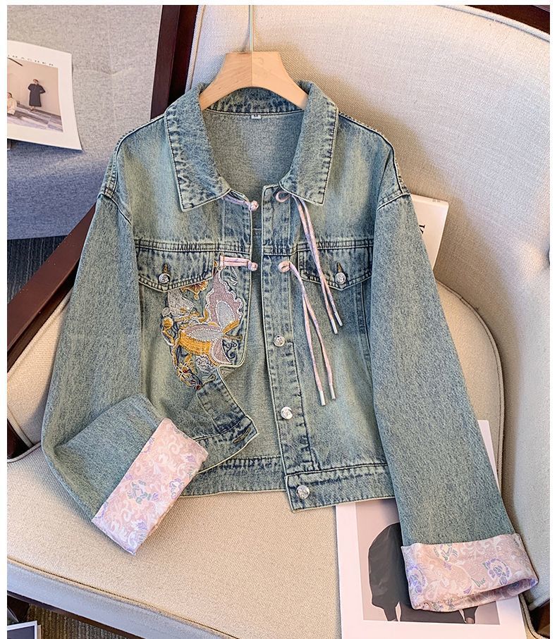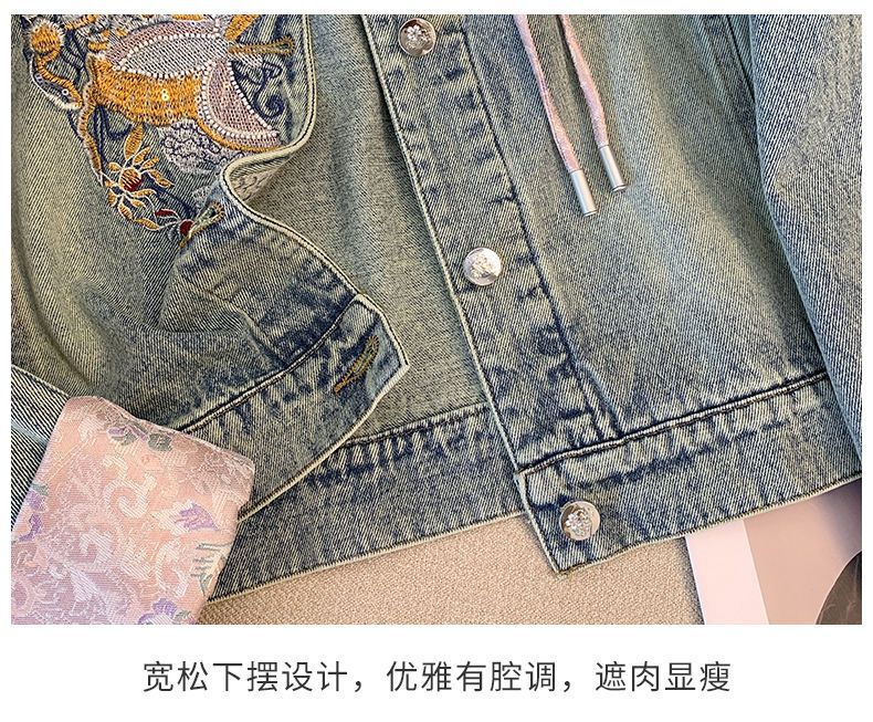 새로운 중국 스타일 국가 스타일 데님 코트 여성의 봄과 가을 2024 새로운 자수 당나라 원피스 짧은 자켓스토어 가기