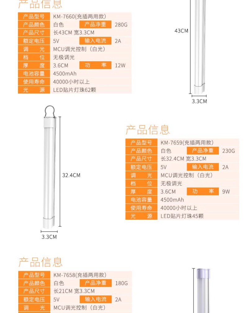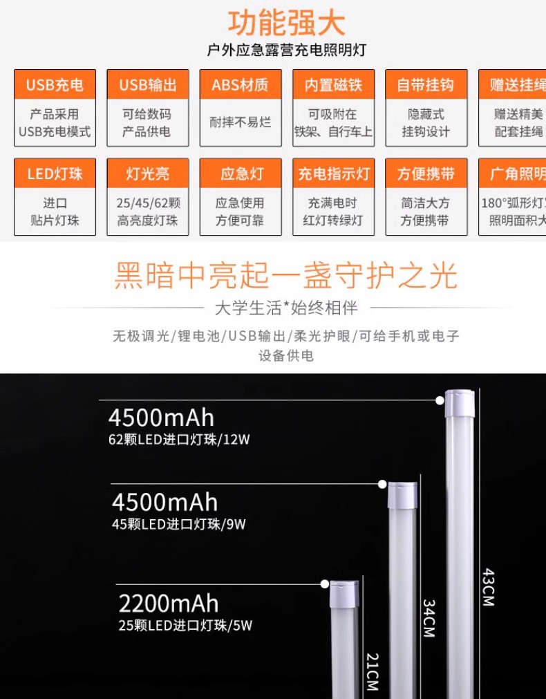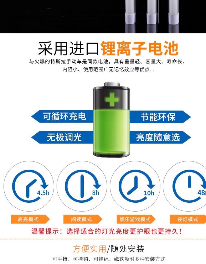 • 9W(램프 비드 45개) 4500mAh 리튬 배터리