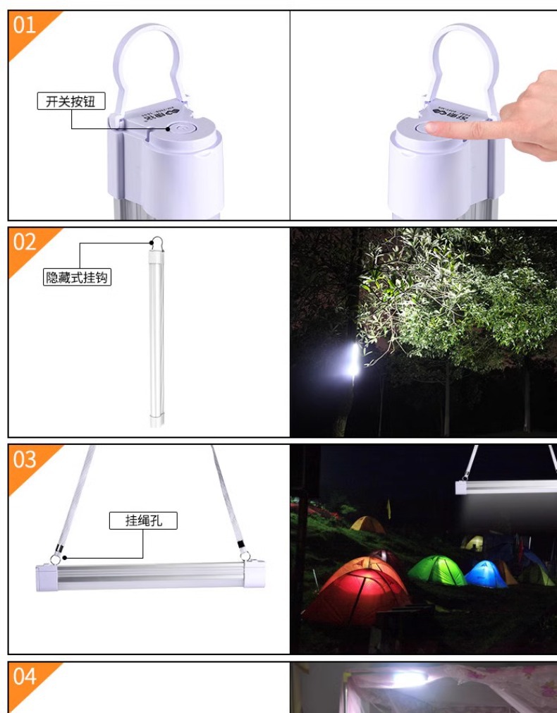 캉밍 LED 비상 야시장 야외 캠핑 랜턴 충전식 텐트 램프 자석 부착 방수 자석식 캠핑 랜턴