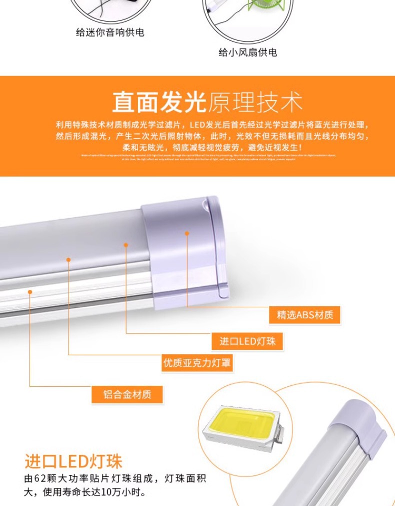 • 5W(램프 비드 25개) 2200mAh 리튬 배터리