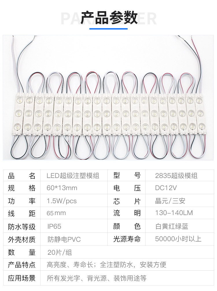 사출 성형 모듈 led2835 패치 12V 광고 발광 블리스 터 워드 모듈 3 칩 구리 브래킷 하이라이트
