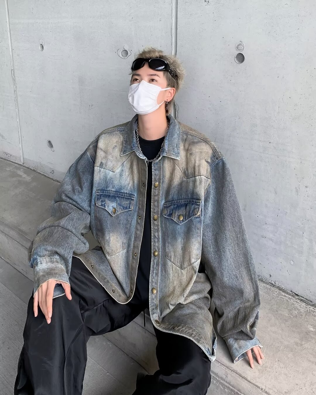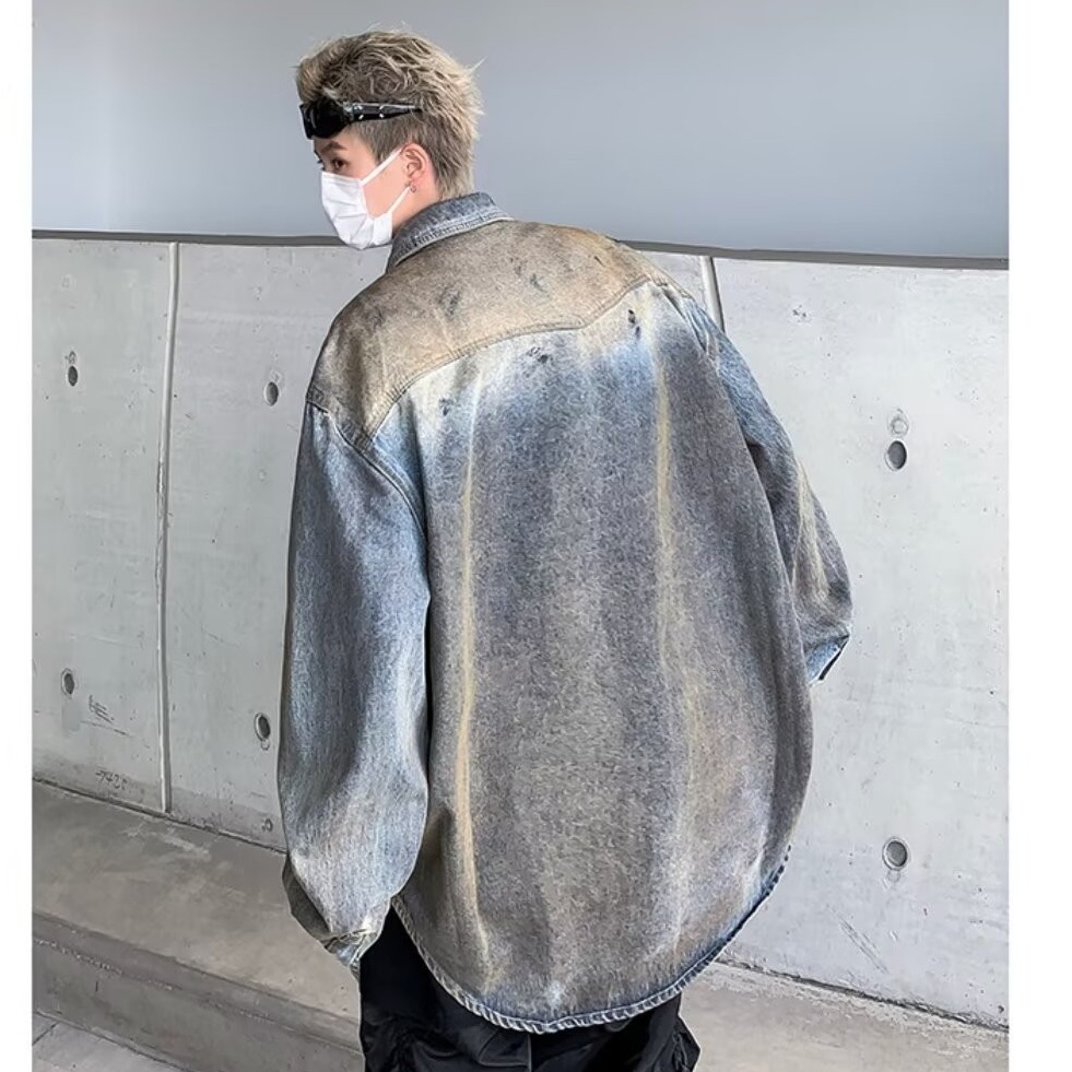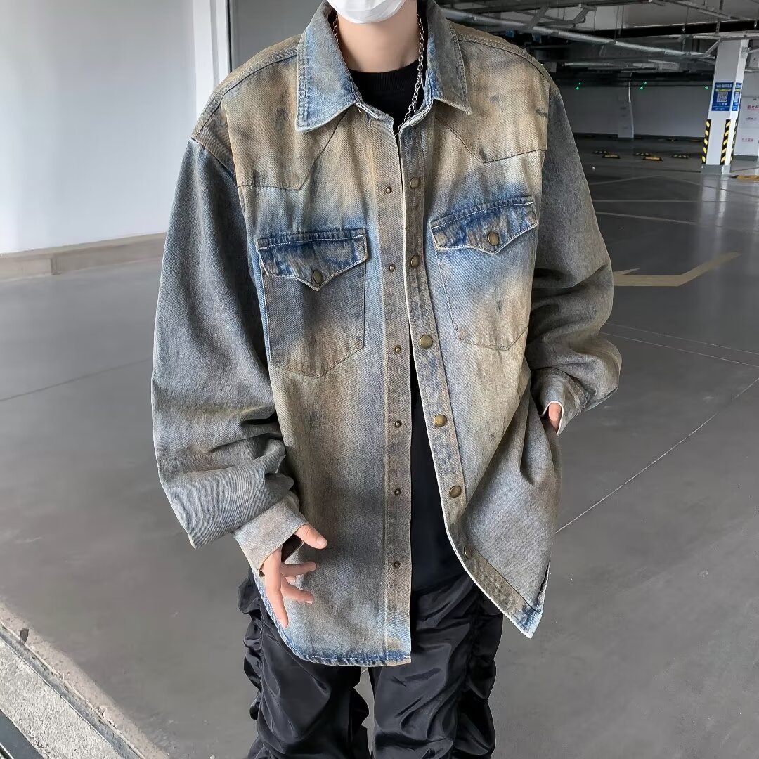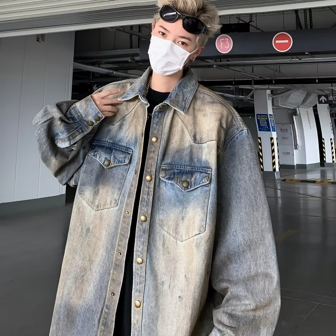 아메리칸 스타일 작업복 데님 재킷 남성 느슨한 플러스 사이즈 봄과 가을 무거운 세탁 빈티지 멀티 포켓 랩 재킷