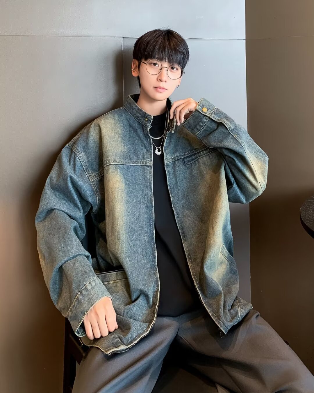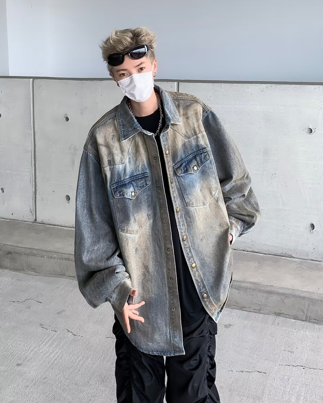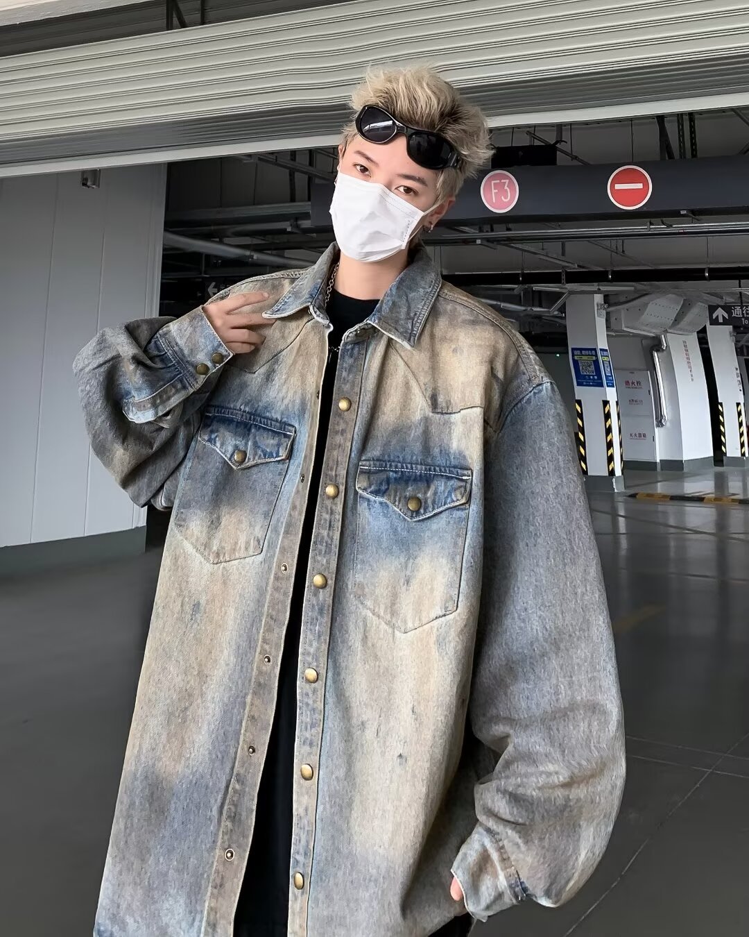 아메리칸 스타일 작업복 데님 재킷 남성 느슨한 플러스 사이즈 봄과 가을 무거운 세탁 빈티지 멀티 포켓 랩 재킷