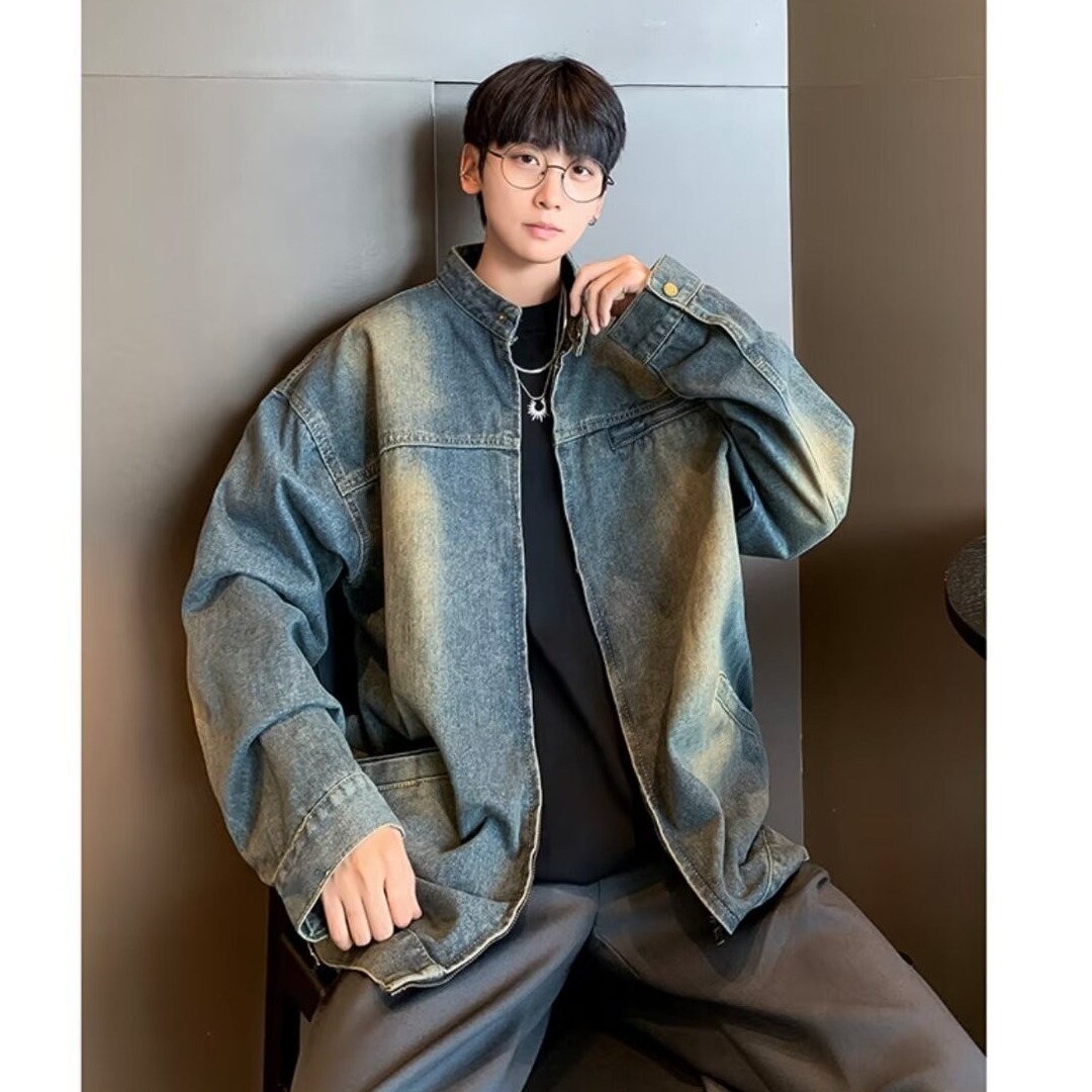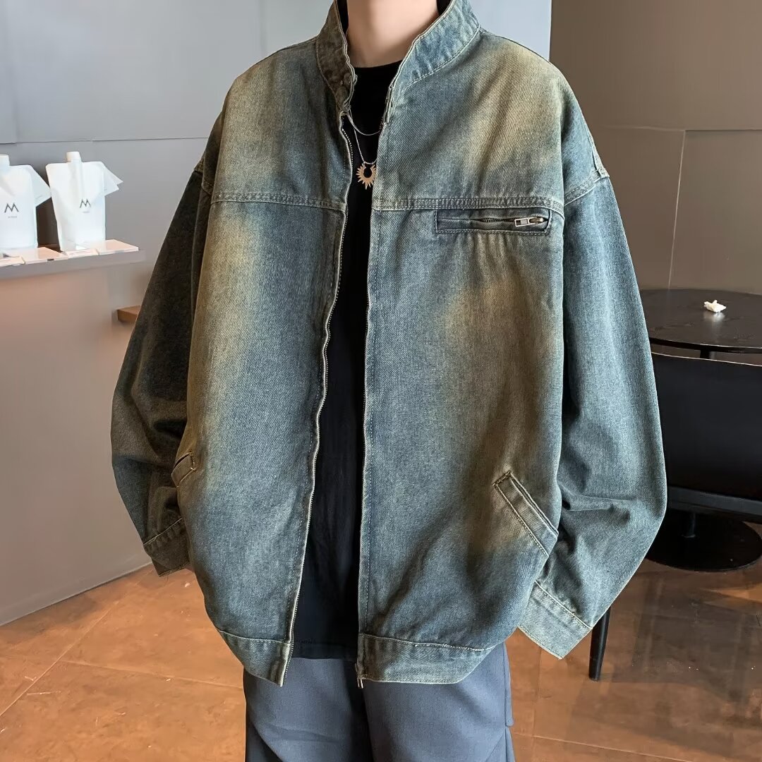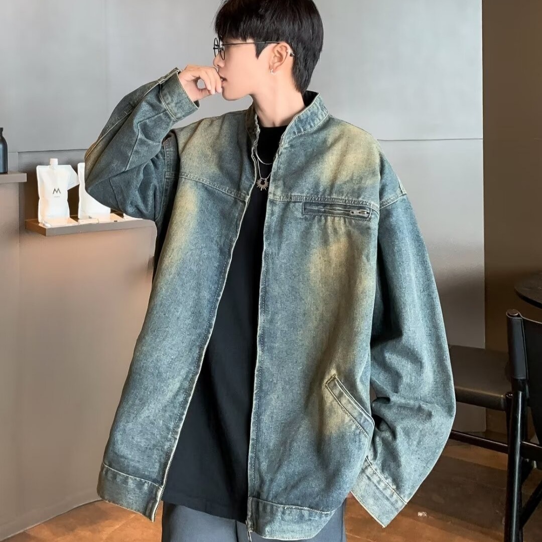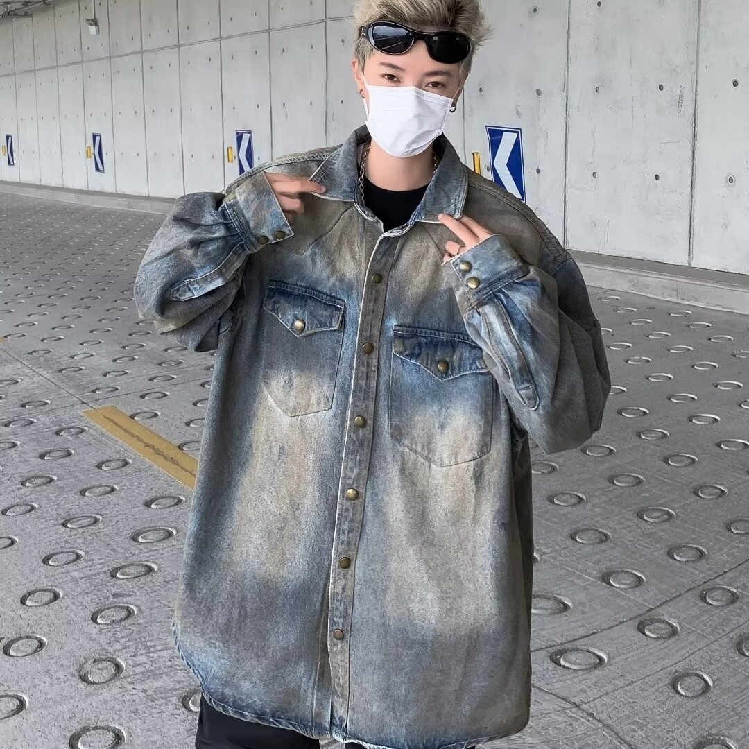 아메리칸 스타일 작업복 데님 재킷 남성 느슨한 플러스 사이즈 봄과 가을 무거운 세탁 빈티지 멀티 포켓 랩 재킷스토어 가기