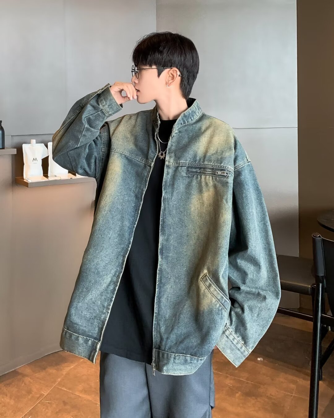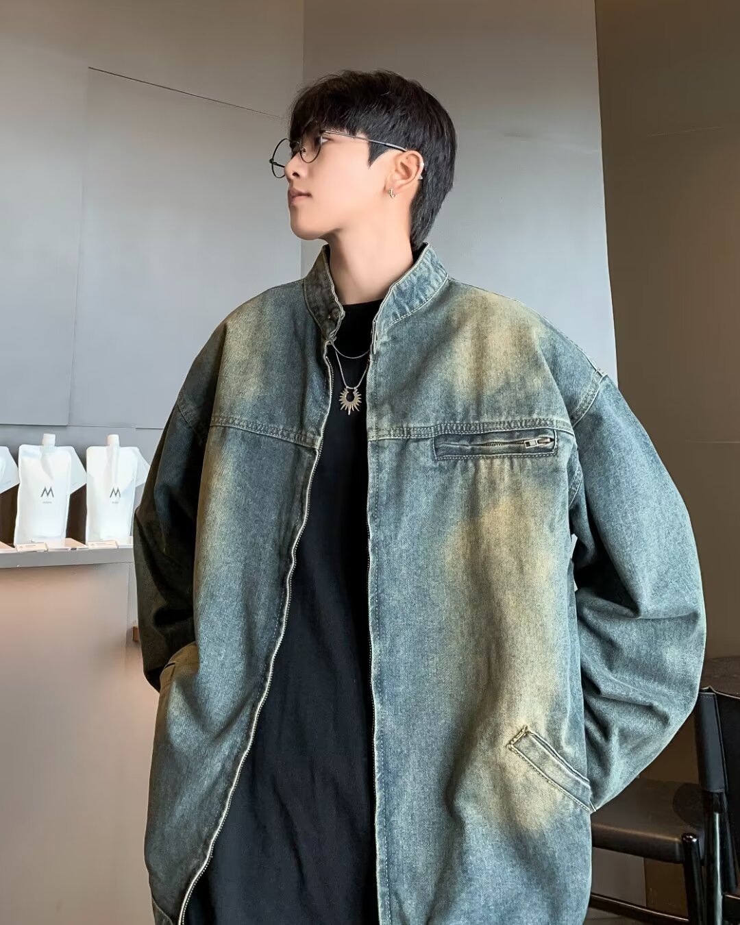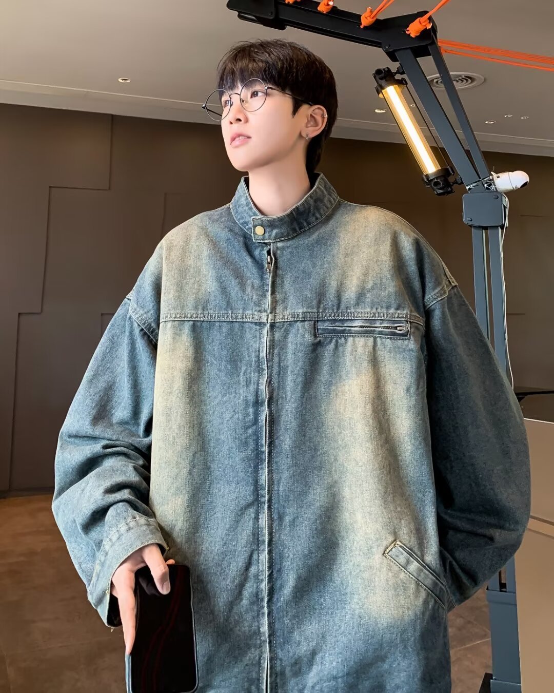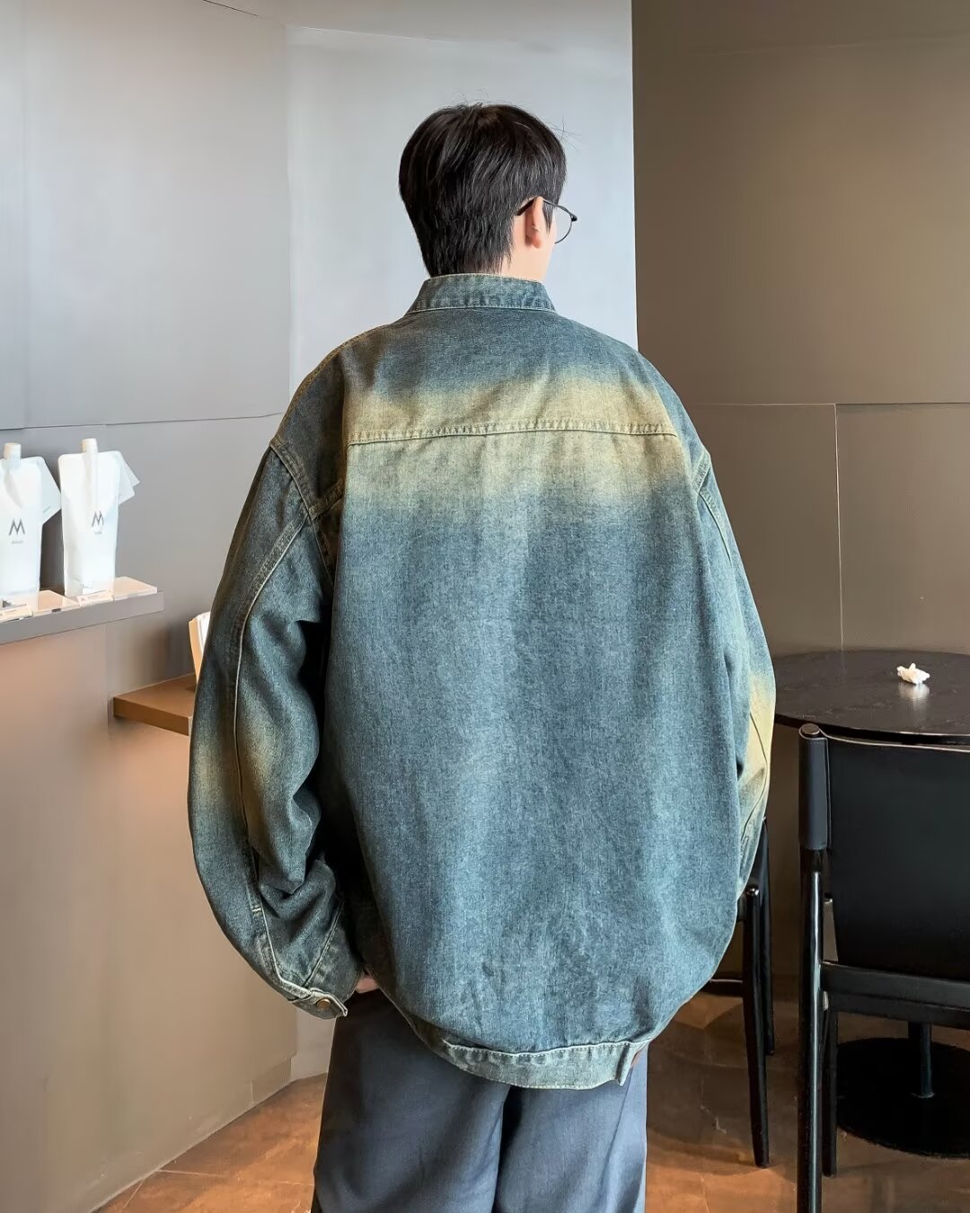아메리칸 스타일 작업복 데님 재킷 남성 느슨한 플러스 사이즈 봄과 가을 무거운 세탁 빈티지 멀티 포켓 랩 재킷스토어 가기