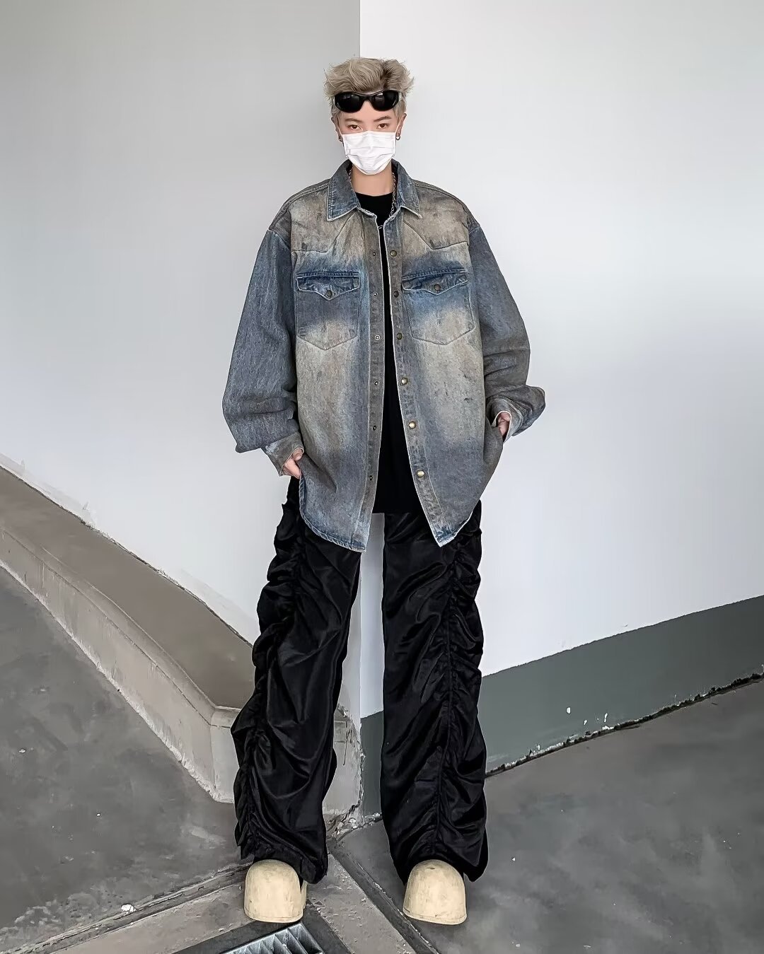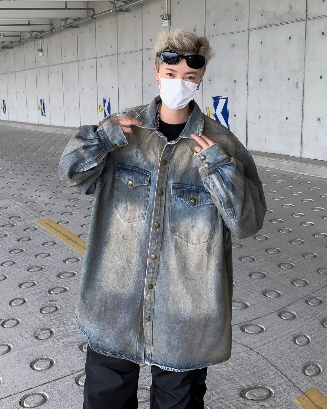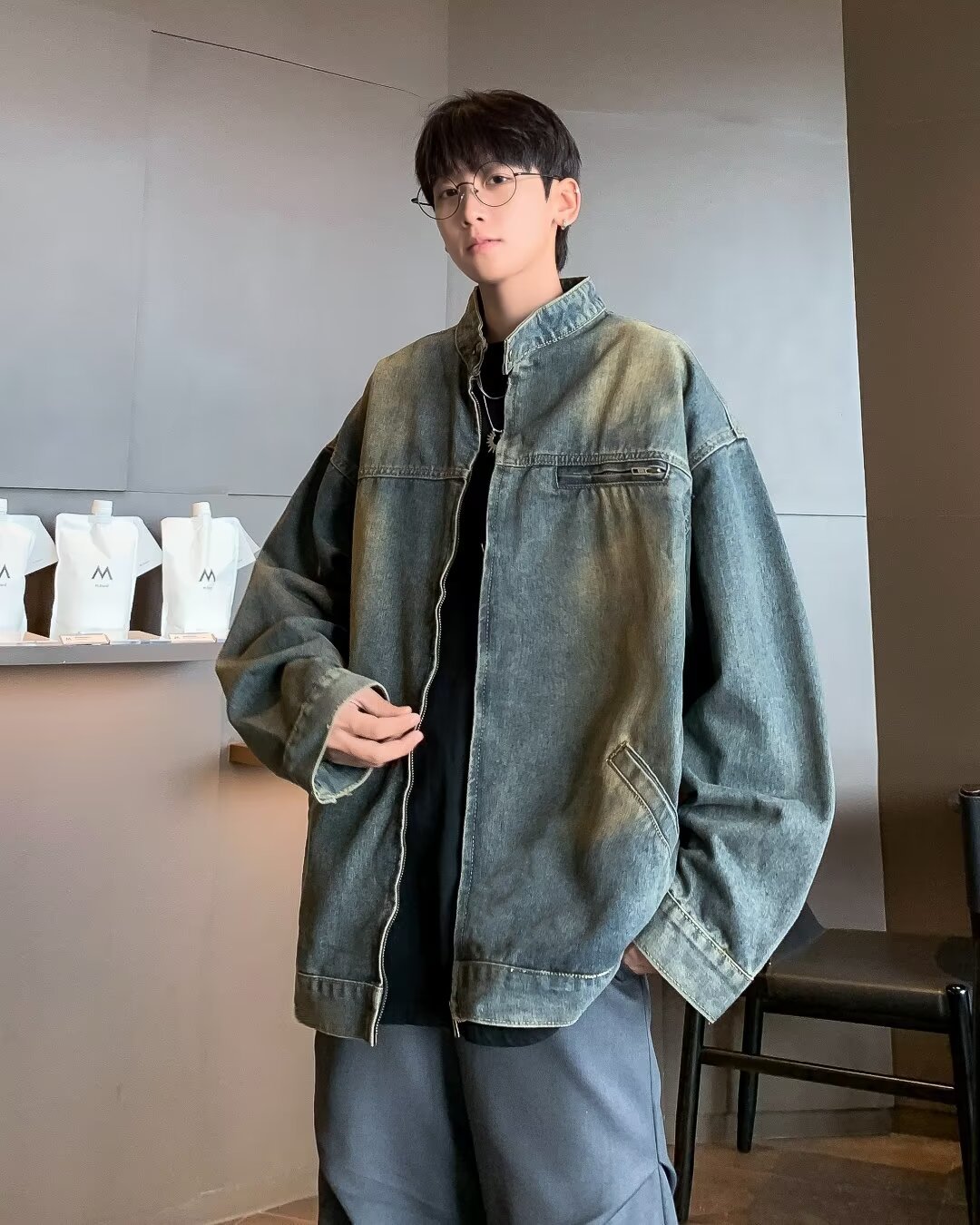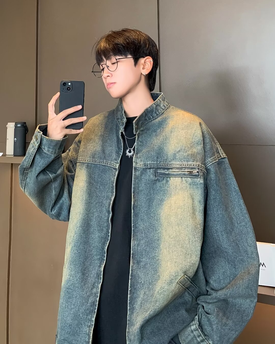 아메리칸 스타일 작업복 데님 재킷 남성 느슨한 플러스 사이즈 봄과 가을 무거운 세탁 빈티지 멀티 포켓 랩 재킷스토어 가기