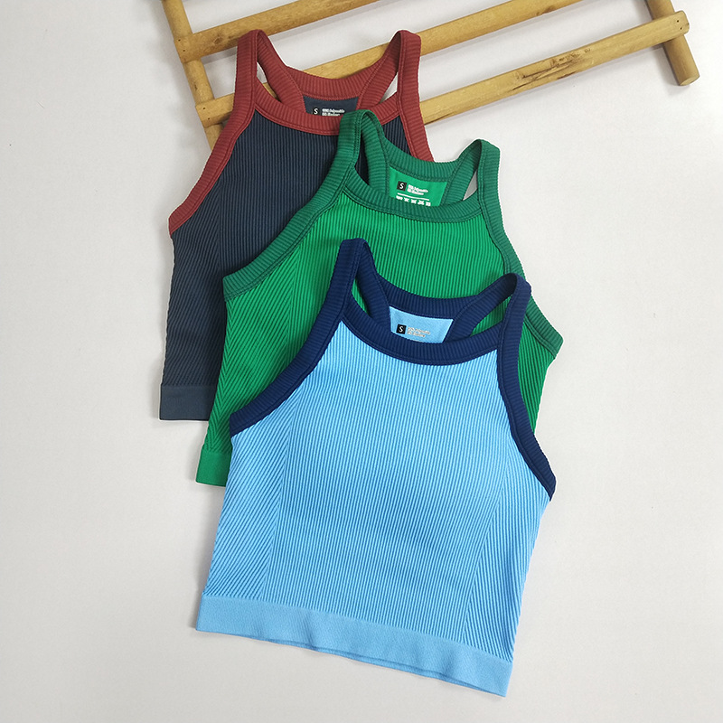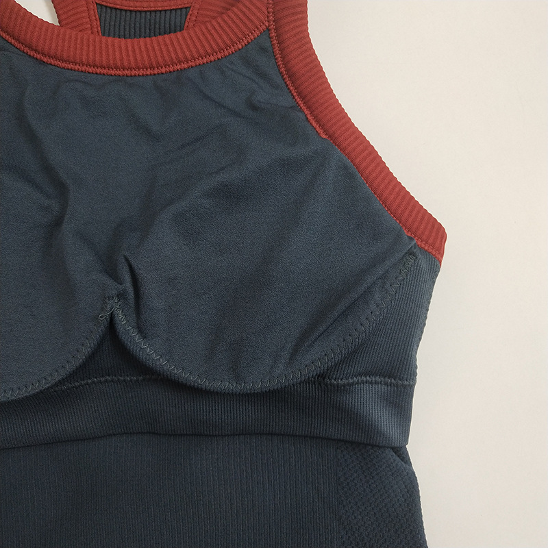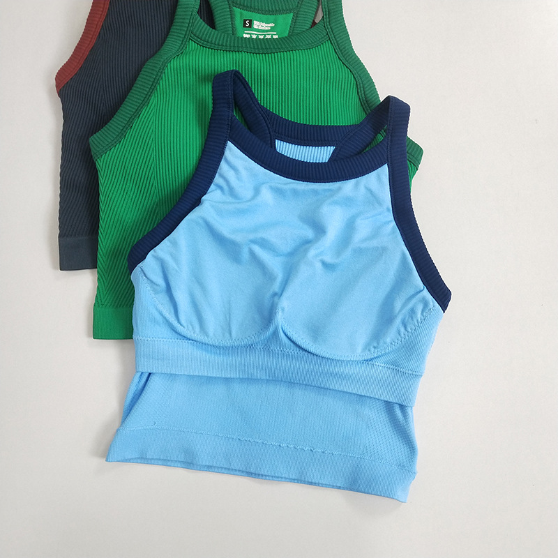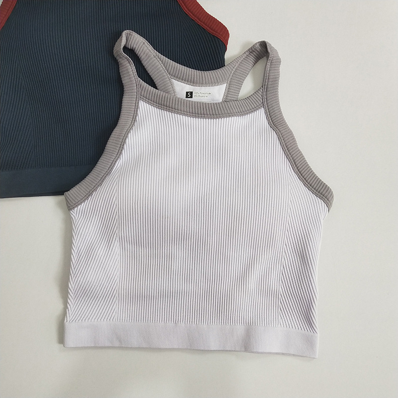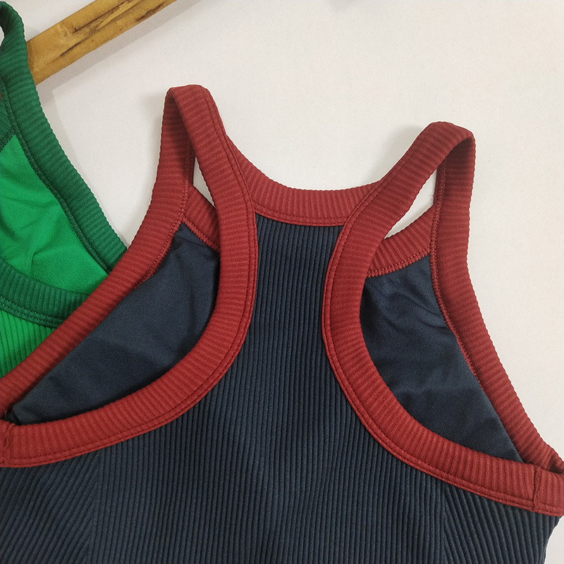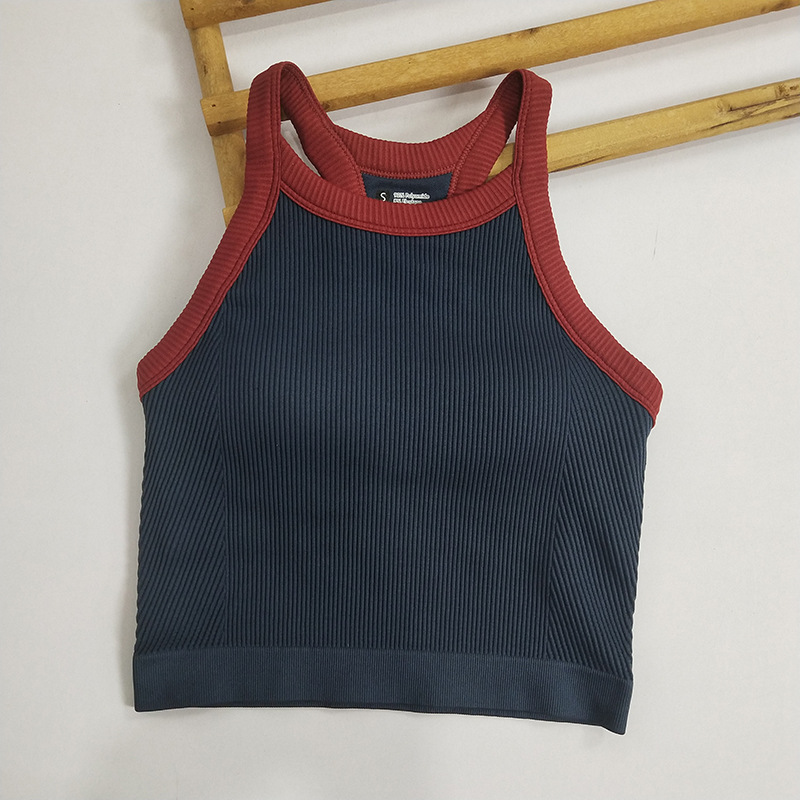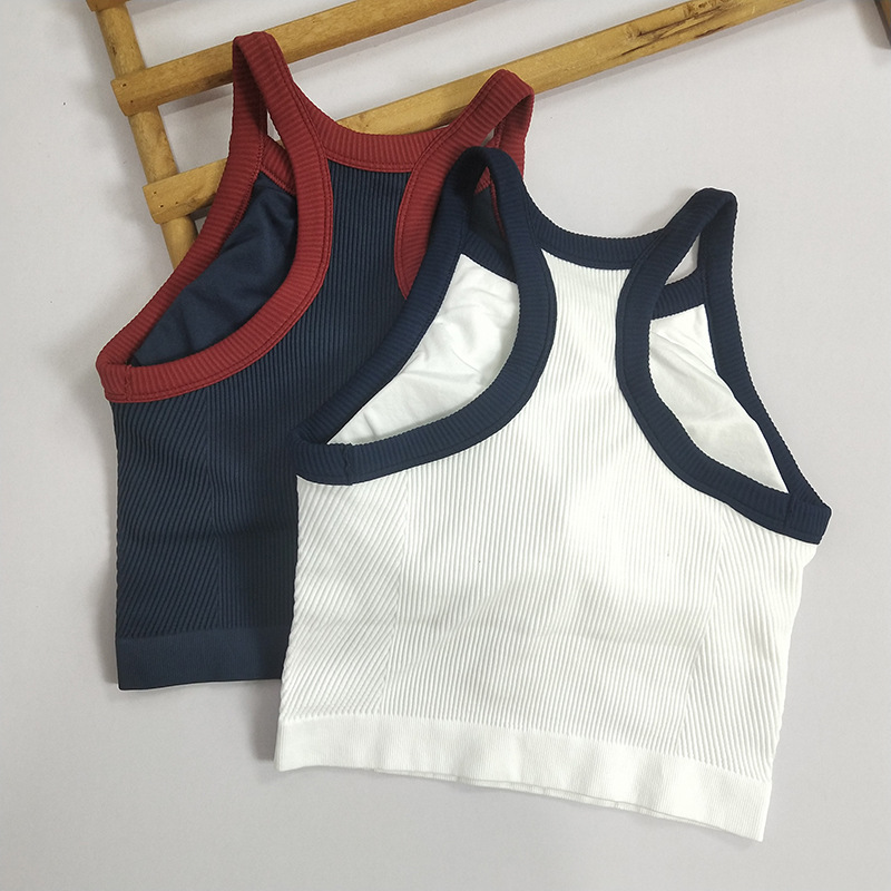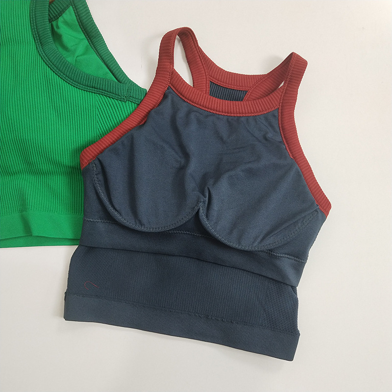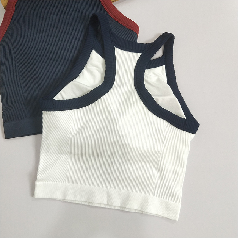 Threaded Color-block 요가 조끼 여성 원피스 아름다운 뒷면 외부 충격 방지 타이트핏 스포츠 브라 훈련 피트니스 탑