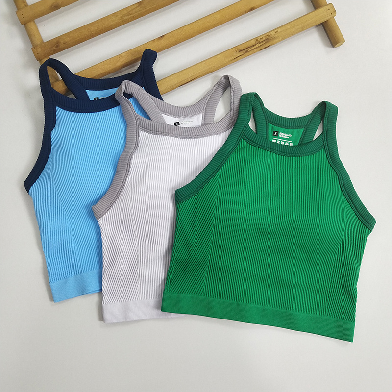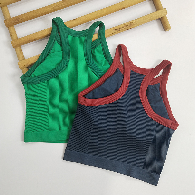 Threaded Color-block 요가 조끼 여성 원피스 아름다운 뒷면 외부 충격 방지 타이트핏 스포츠 브라 훈련 피트니스 탑스토어 가기
