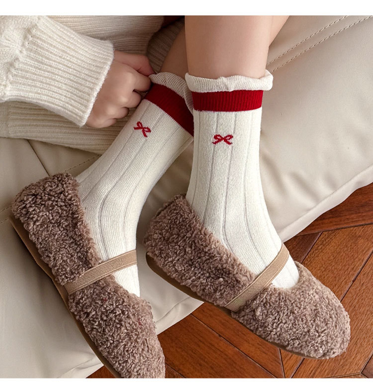 레드 어린이 양말 두꺼운 따뜻한 테리 양말 겨울 튜브 양말 남녀 면화 양말 아기 양말 두꺼운 양말