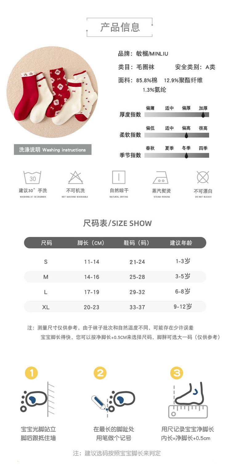 레드 어린이 양말 두꺼운 따뜻한 테리 양말 겨울 튜브 양말 남녀 면화 양말 아기 양말 두꺼운 양말스토어 가기
