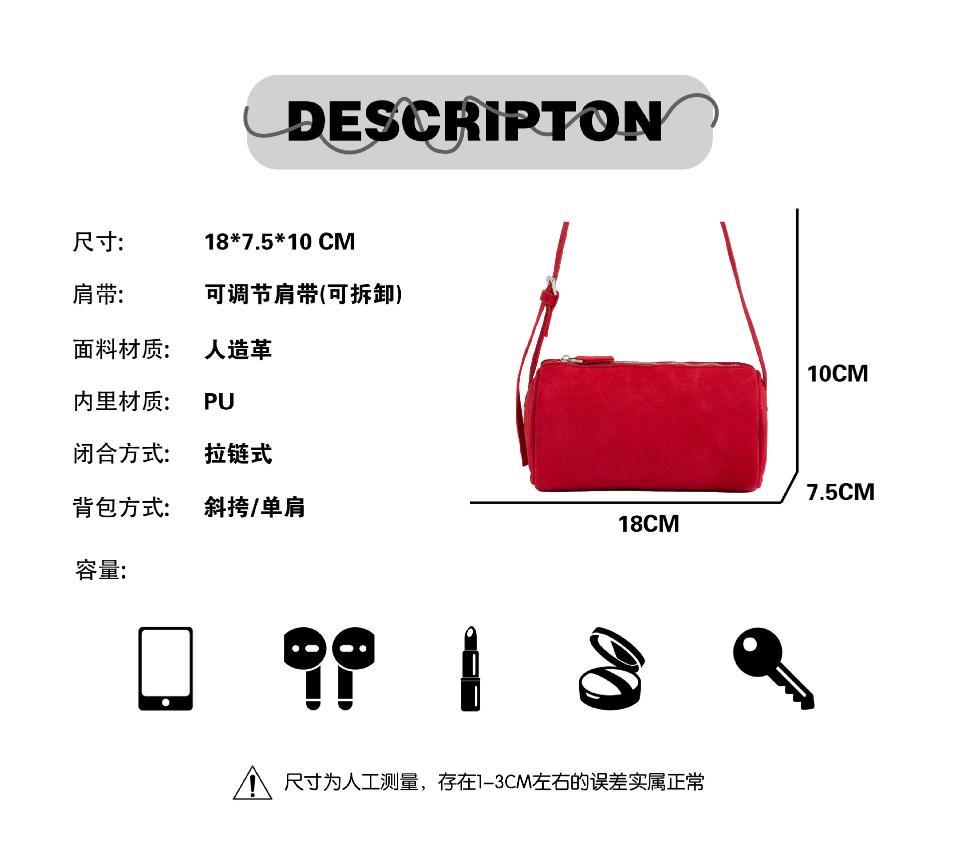 2024 가을과 겨울 틈새 디자인 올 매치 어깨 크로스 바디 실린더 스웨이드 귀여운 통근 핸드 헬드 보스턴 가방