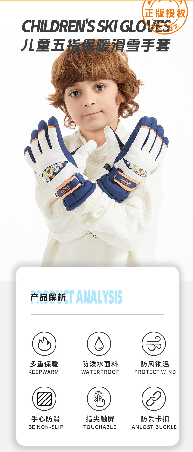 【货号】T015儿童五指滑雪