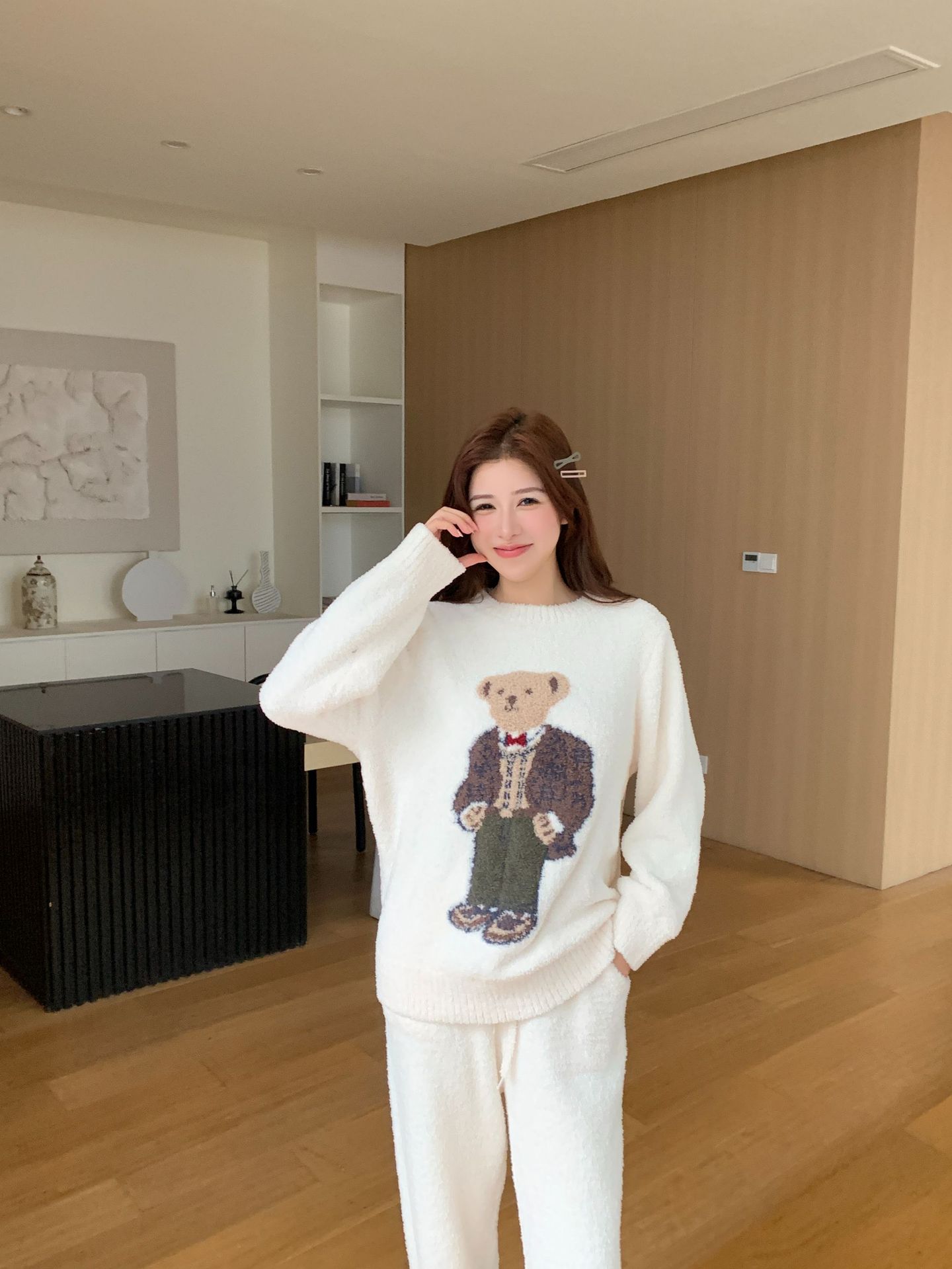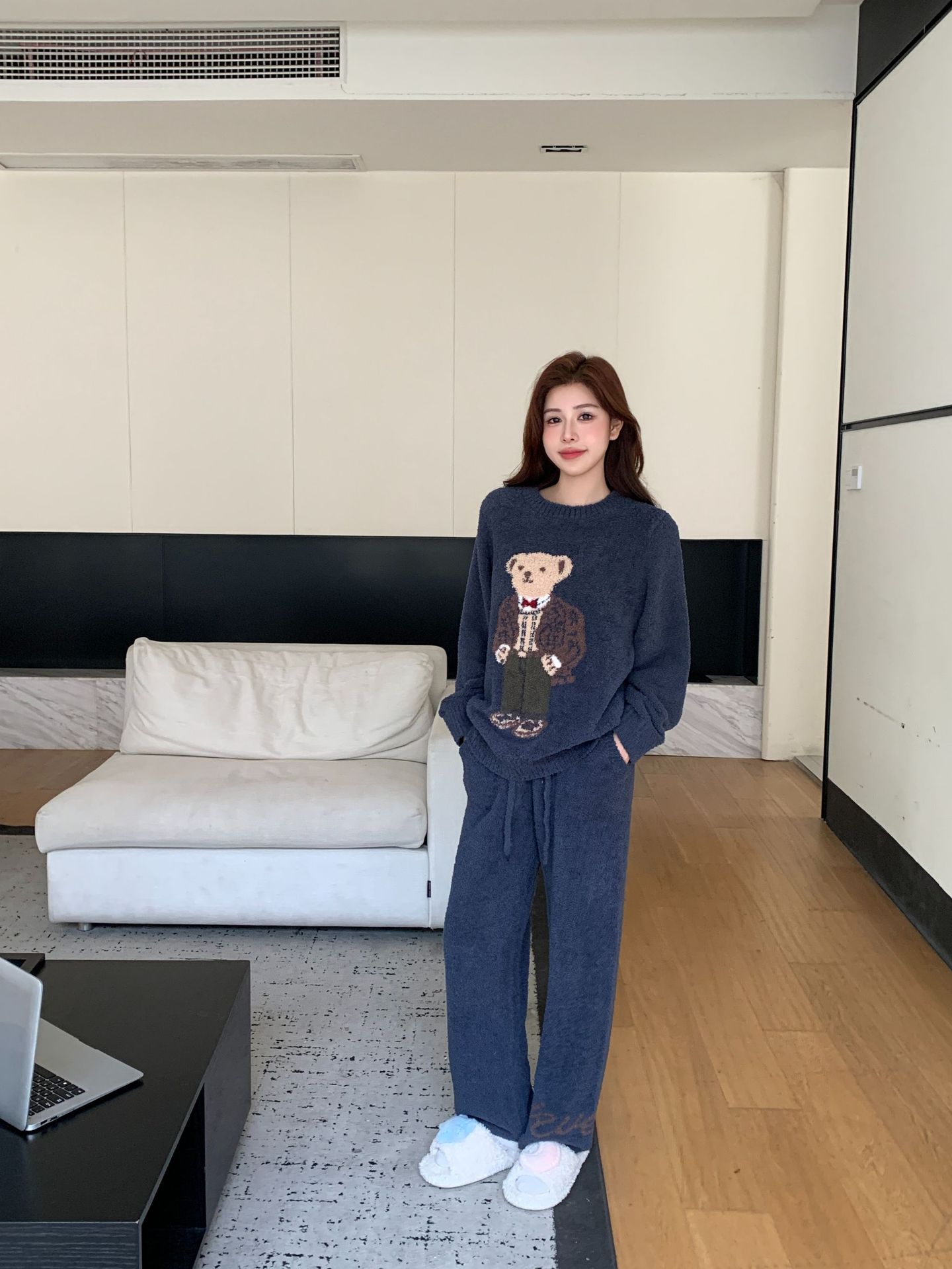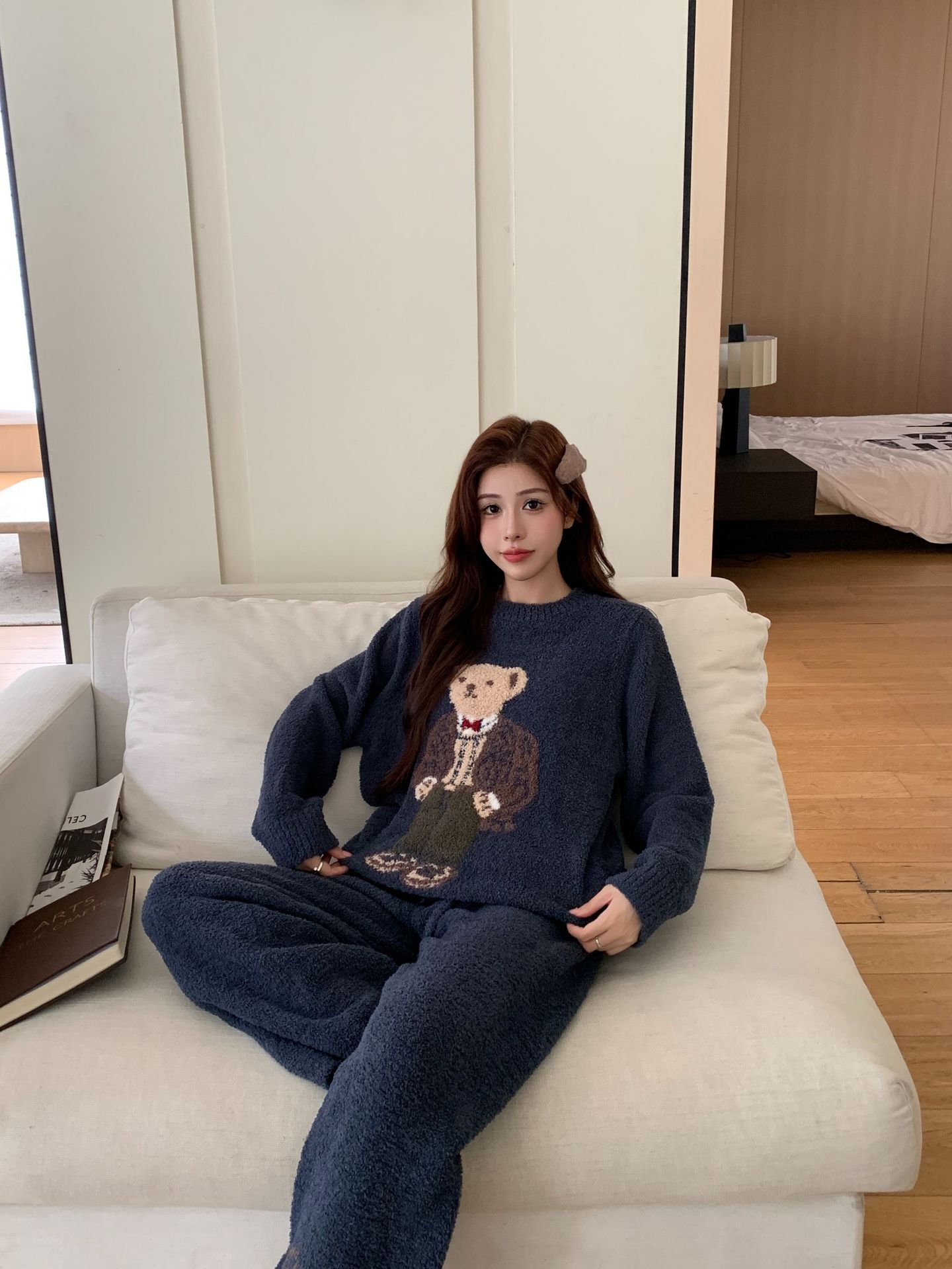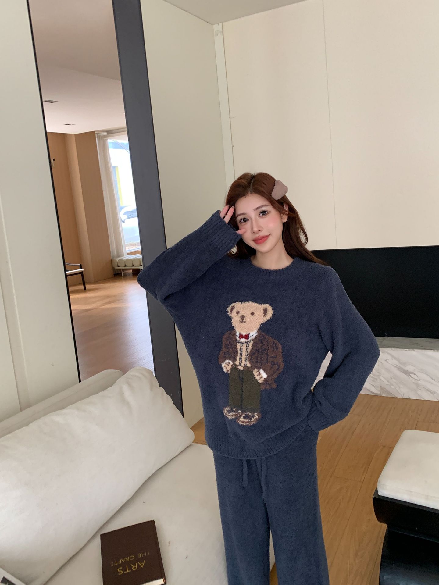 2024 가을과 겨울 부드러운 귀여운 만화 달콤한 격자 무늬 베어 여성용 두꺼운 홈 옷 잠옷스토어 가기