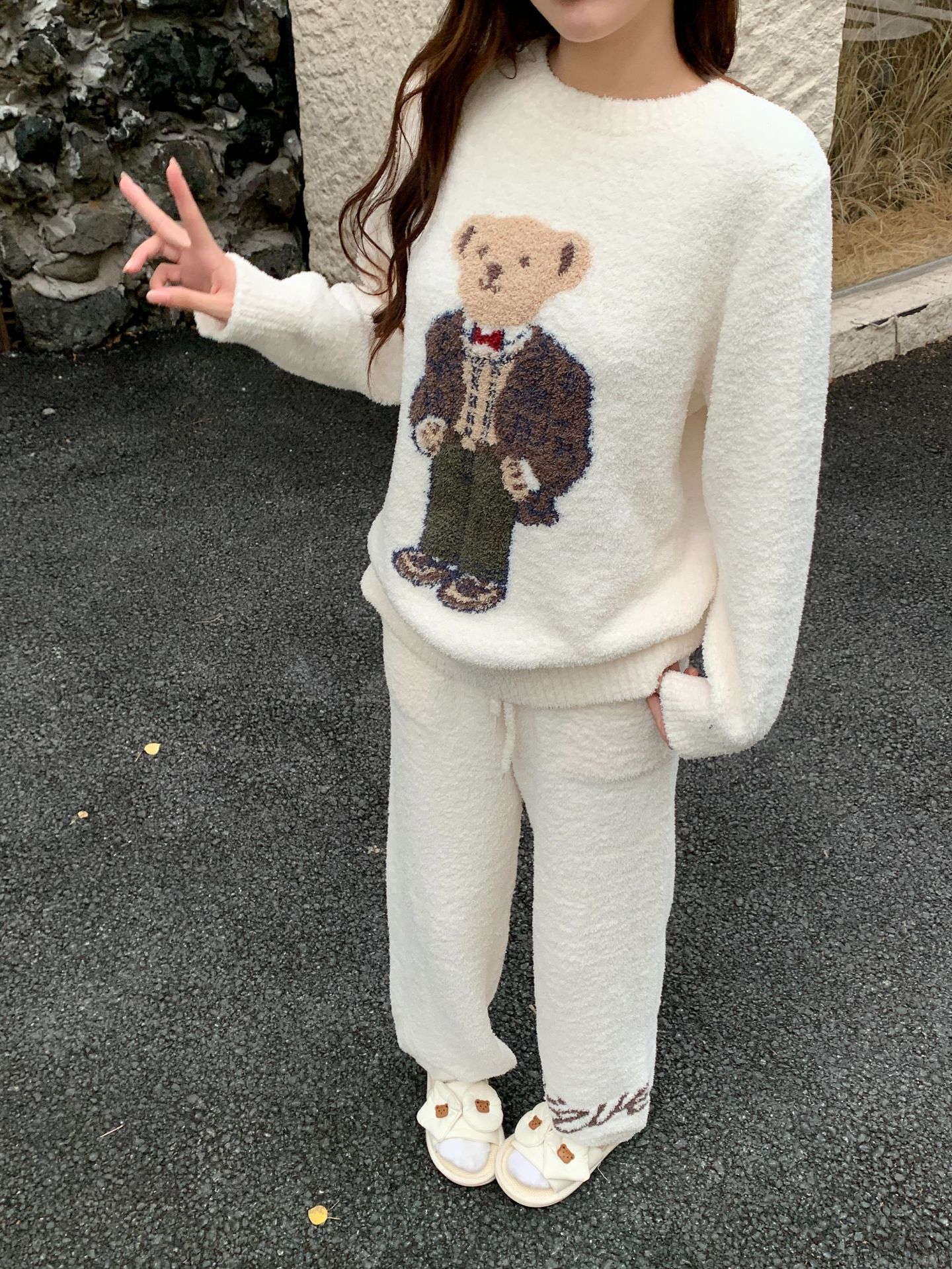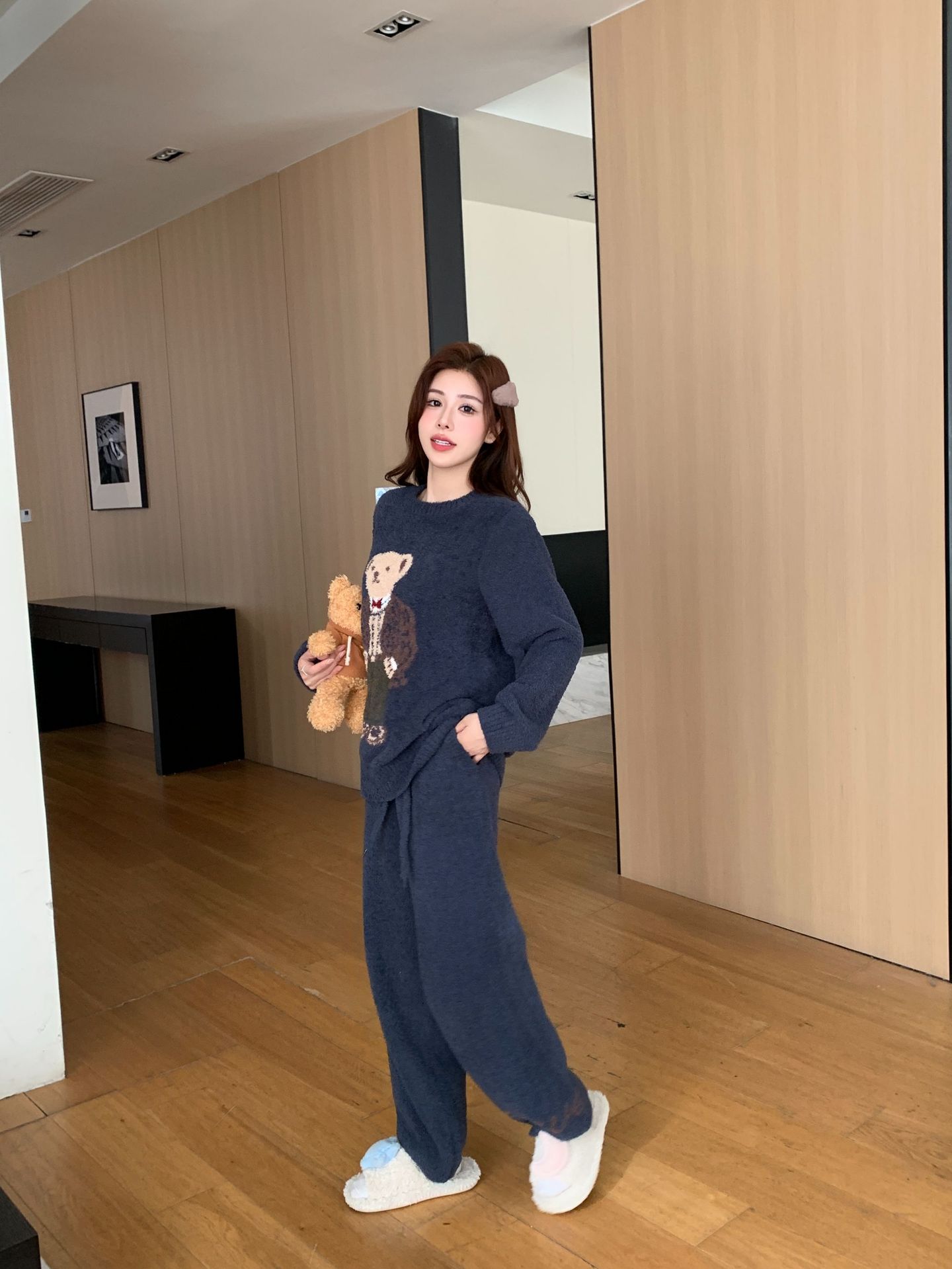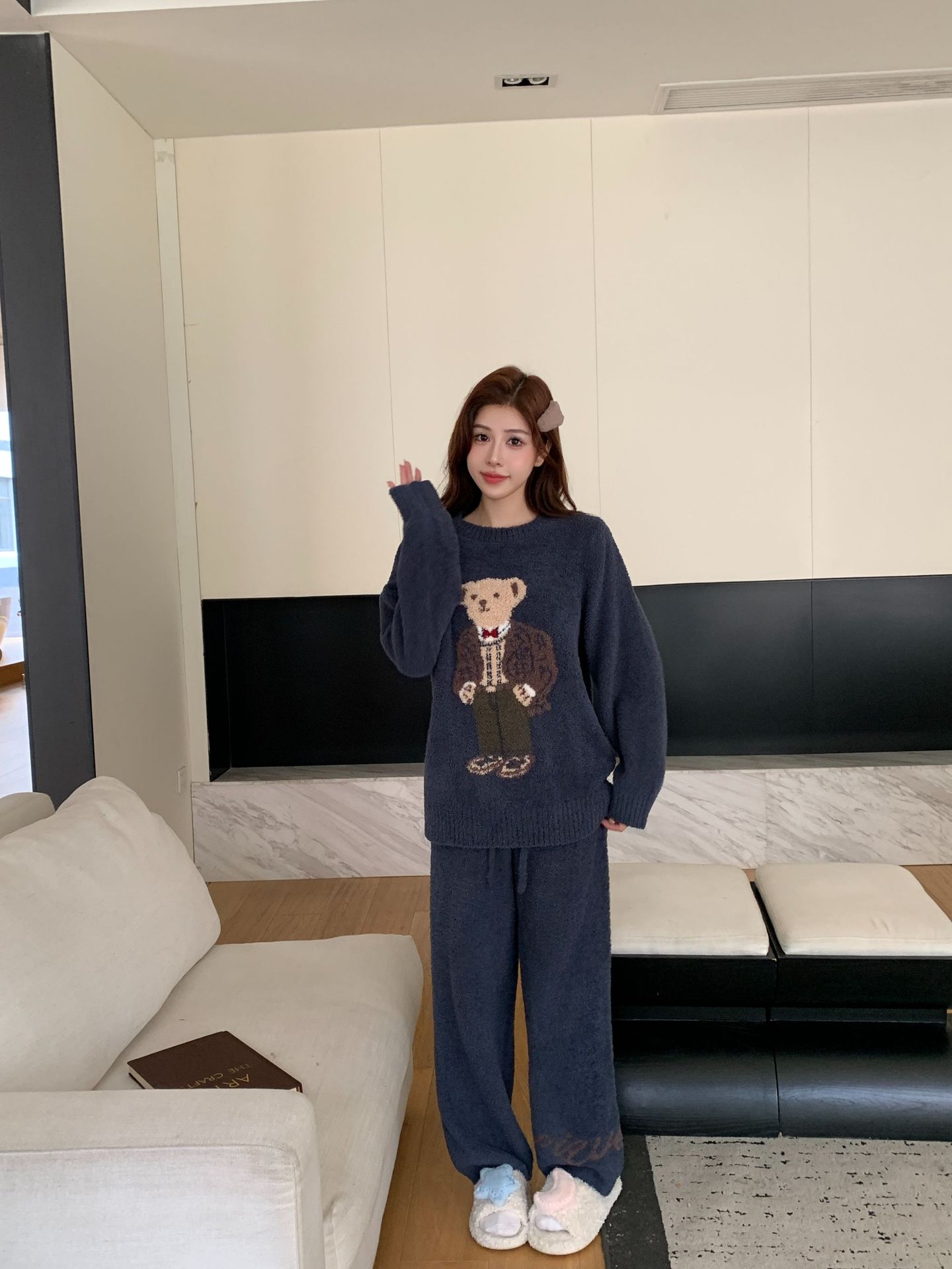 2024 가을과 겨울 부드러운 귀여운 만화 달콤한 격자 무늬 베어 여성용 두꺼운 홈 옷 잠옷스토어 가기