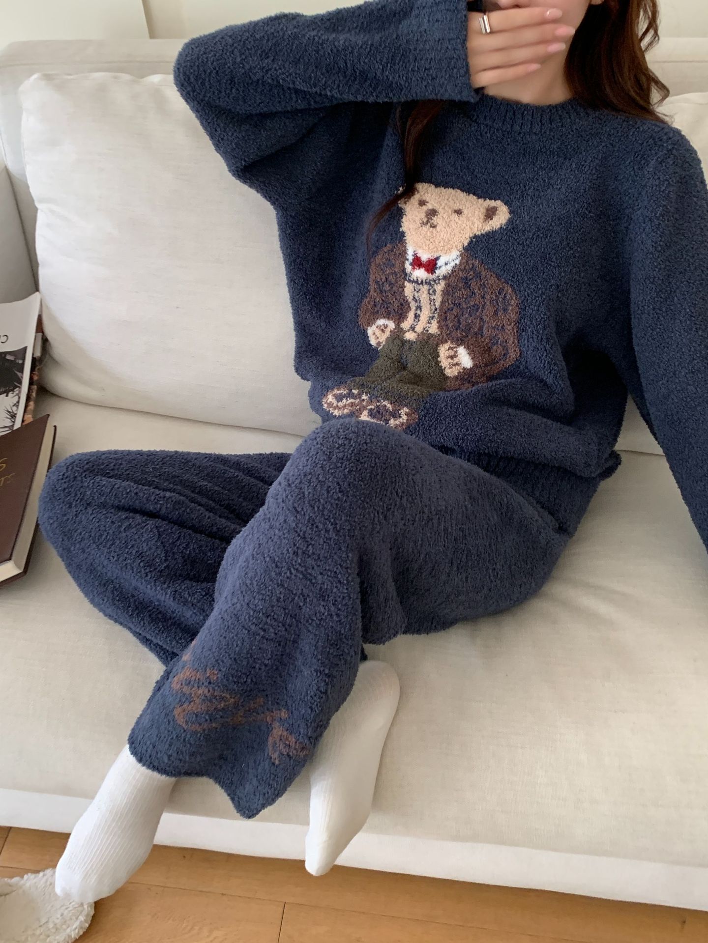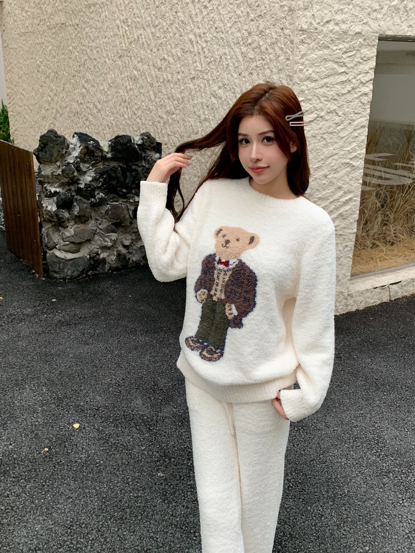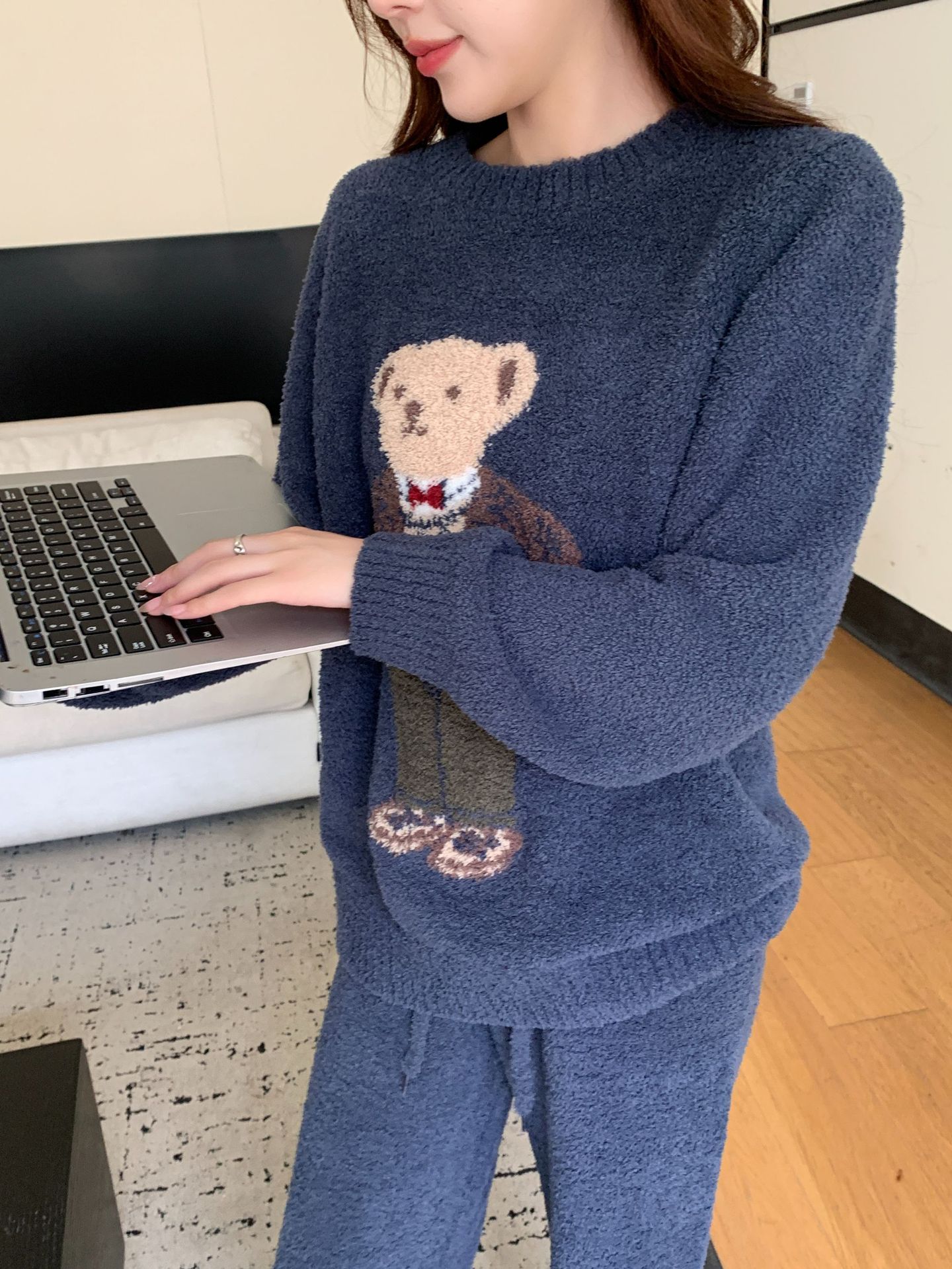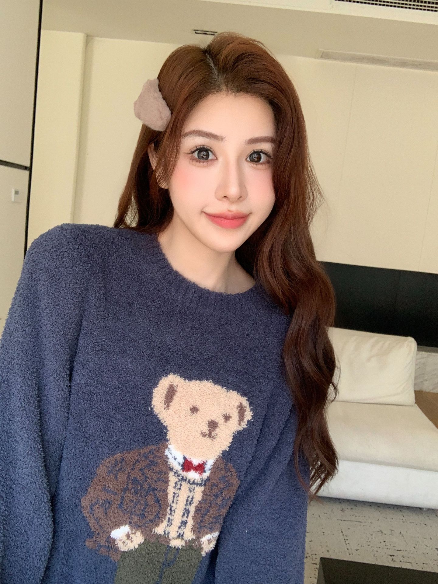 2024 가을과 겨울 부드러운 귀여운 만화 달콤한 격자 무늬 베어 여성용 두꺼운 홈 옷 잠옷스토어 가기