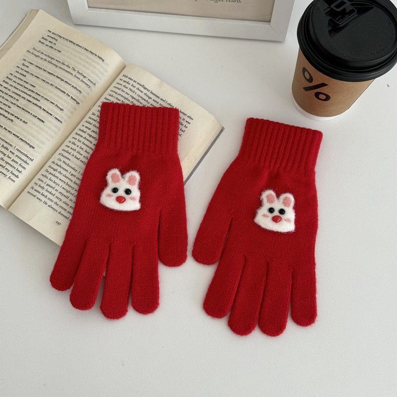 만화 귀여운 다섯 손가락 장갑 Xin Bang 가을과 겨울 학생 모든 경기 라이딩 감기 방지 따뜻한 손가락 니트 장갑