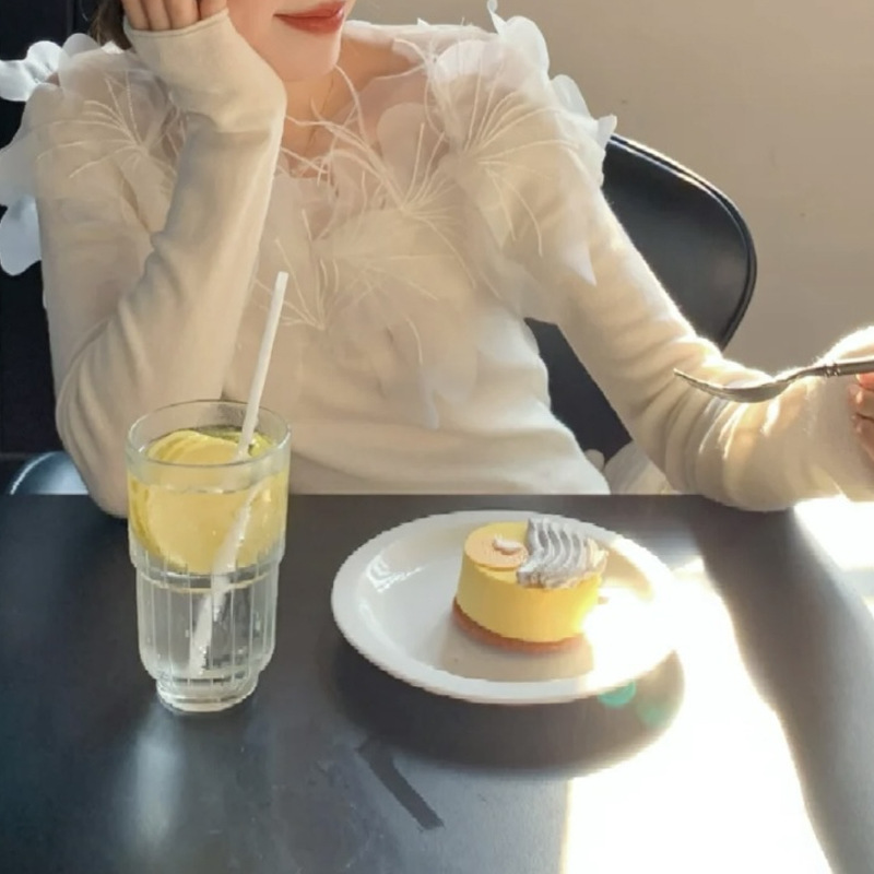 锦倩 小香风纯欲羽毛上衣女春秋新款打底衫长袖内搭针织衫 修身型