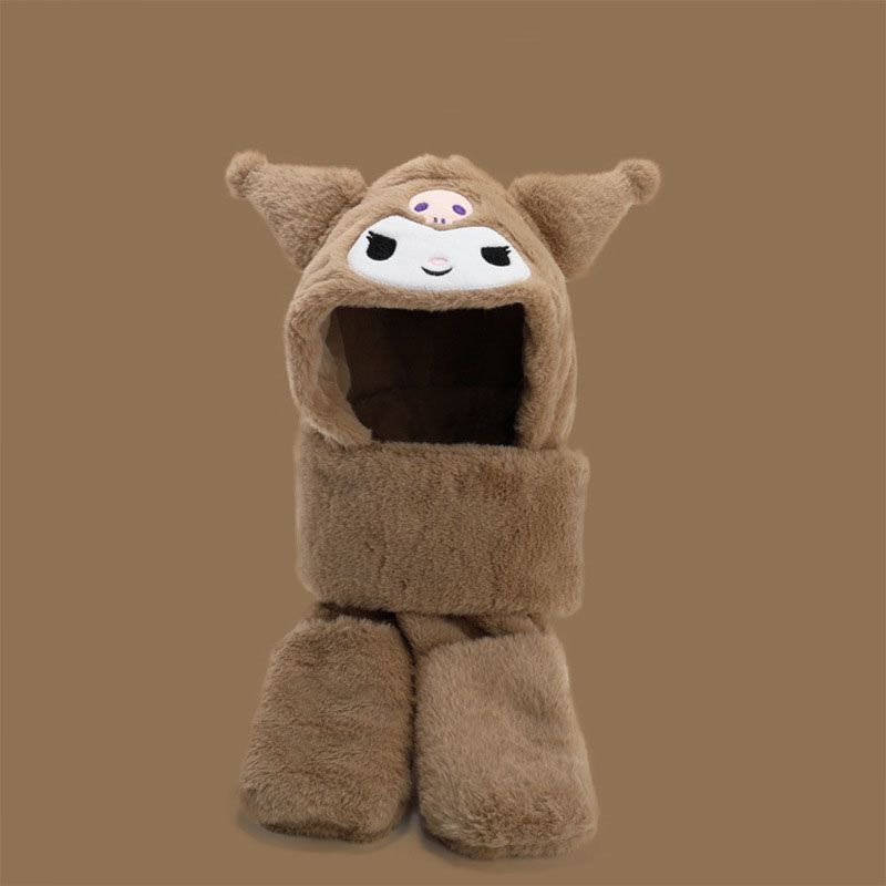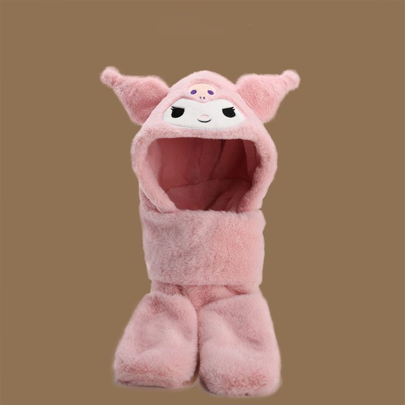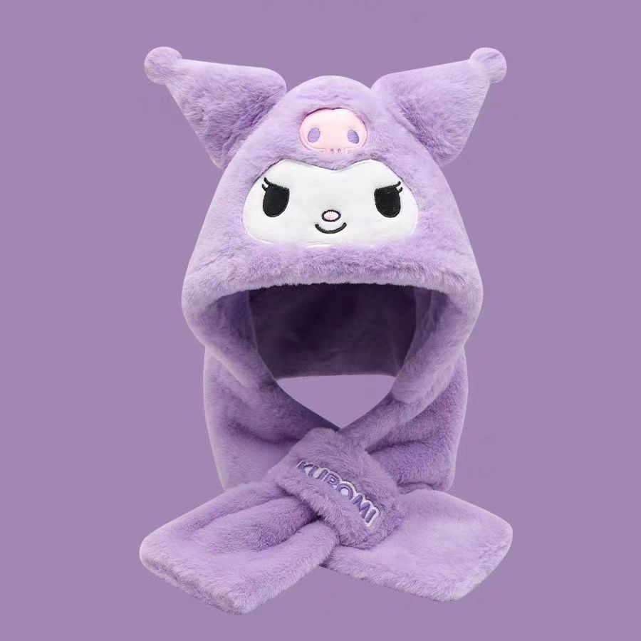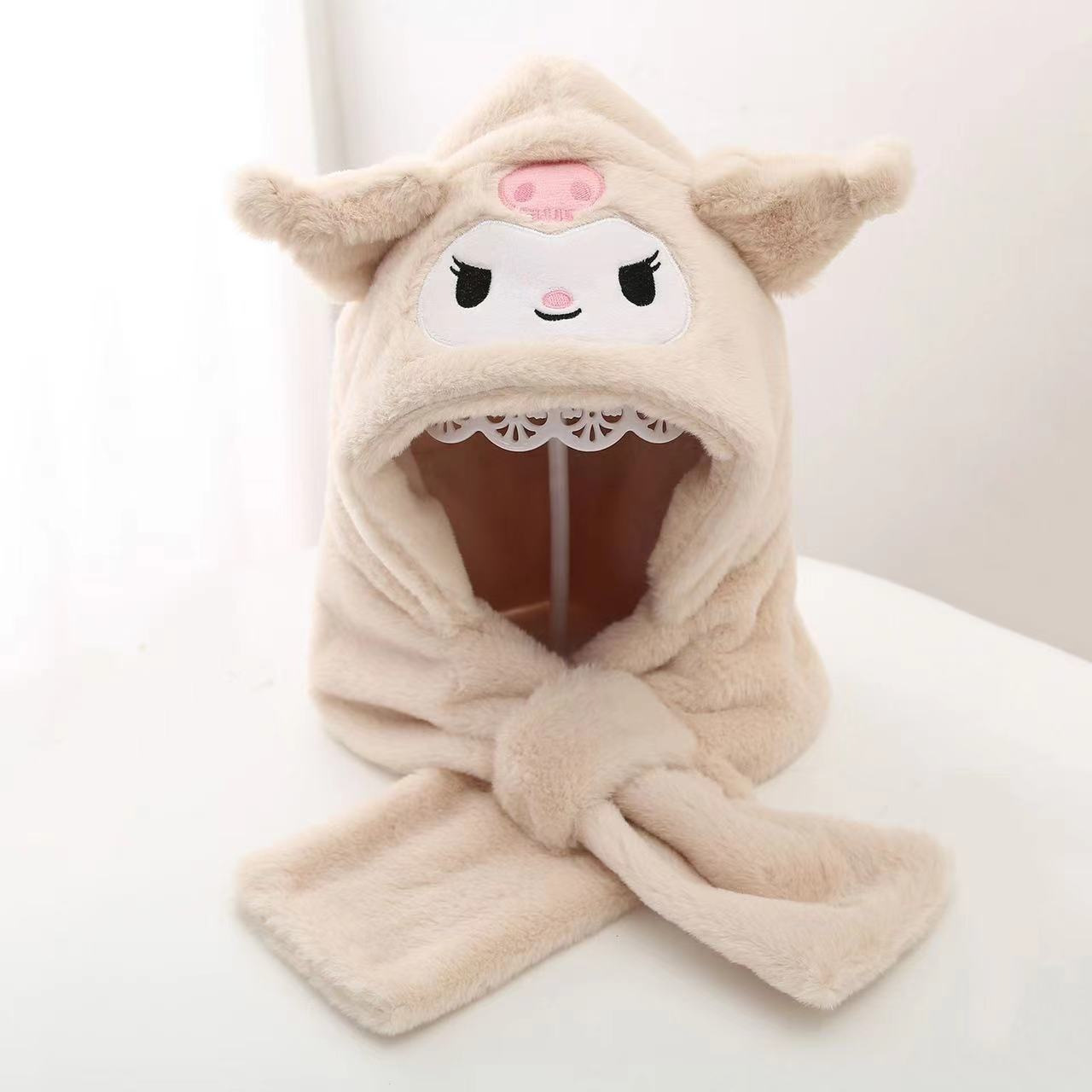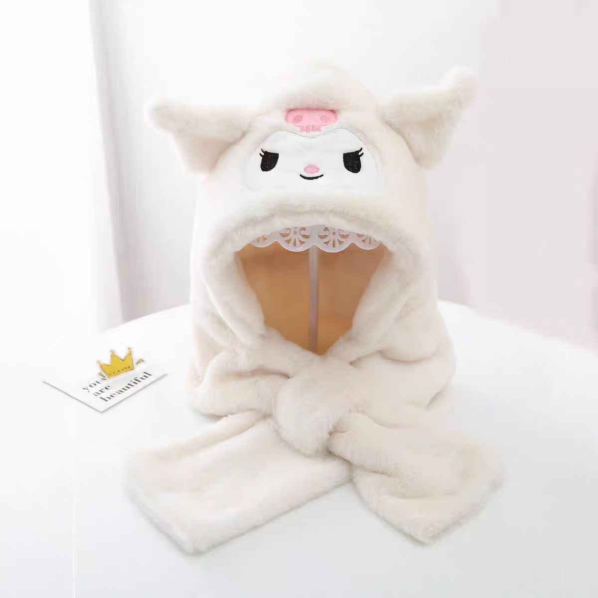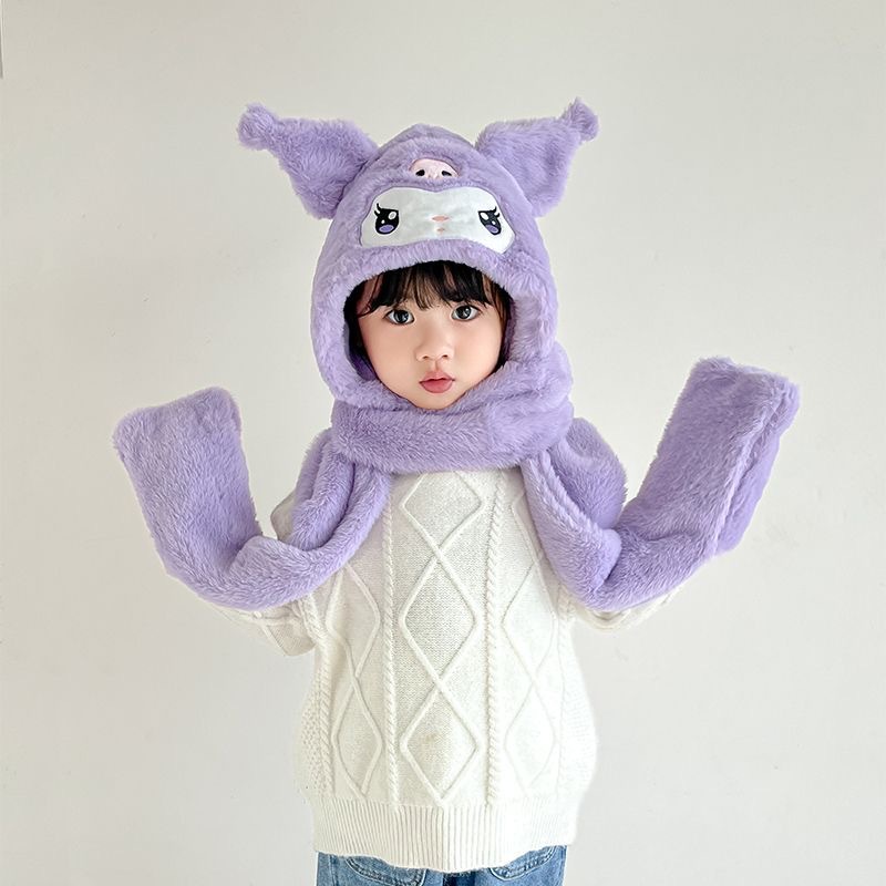 귀여운 쿠로미 어린이 모자와 스카프 통합 겨울 귀 보호 기모 두꺼운 인터넷 연예인 따뜻한 후드 스카프스토어 가기