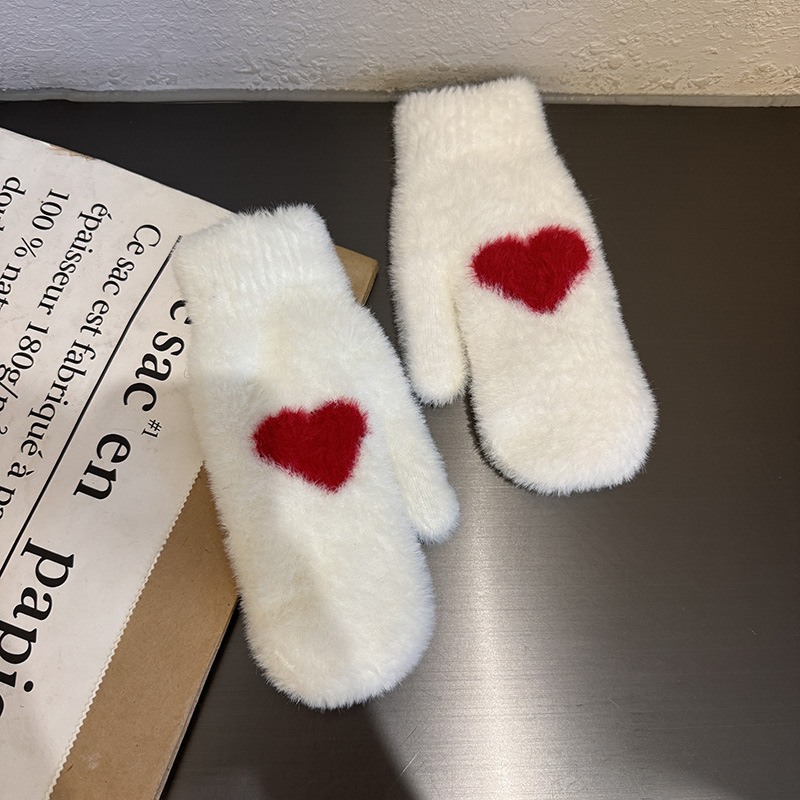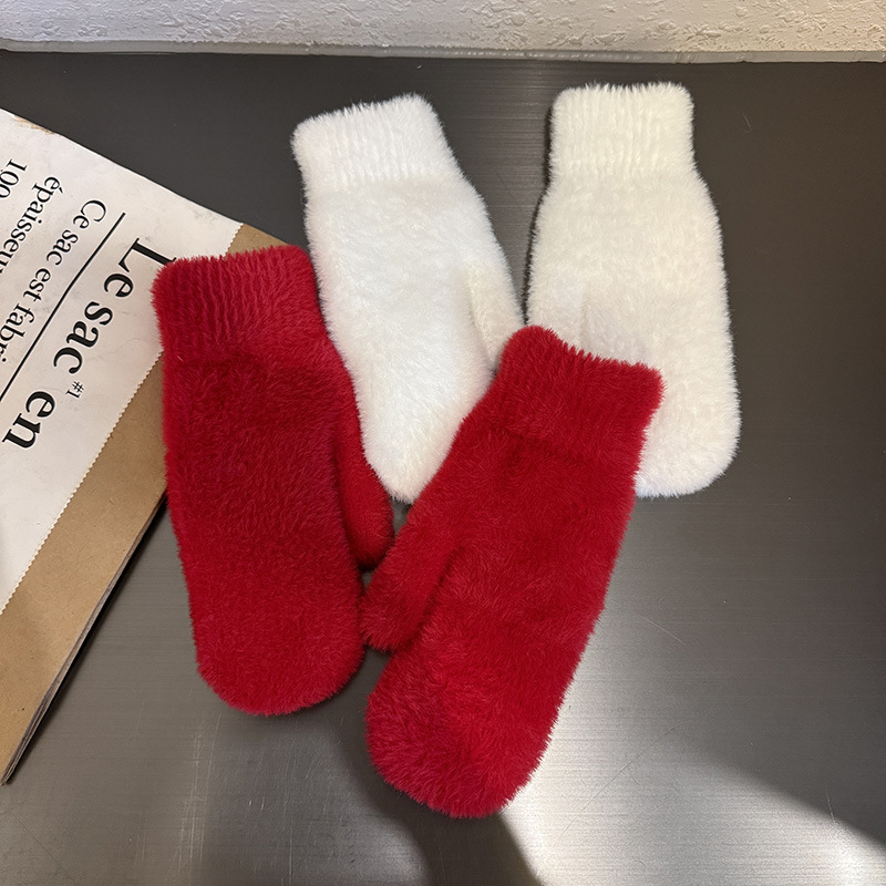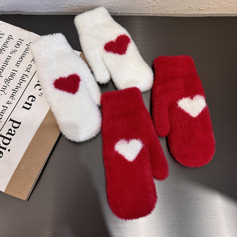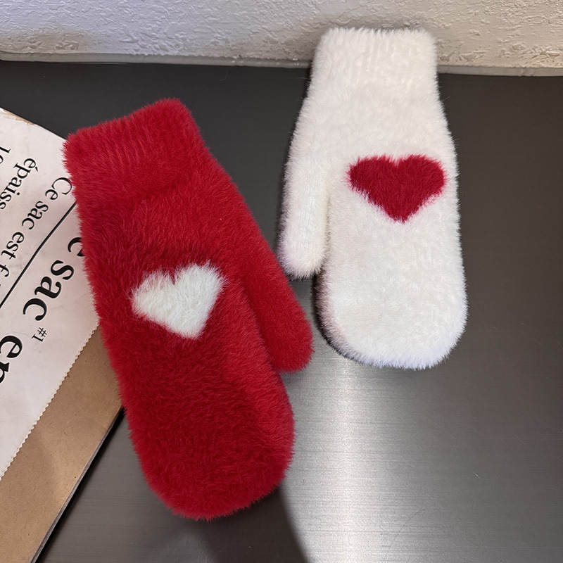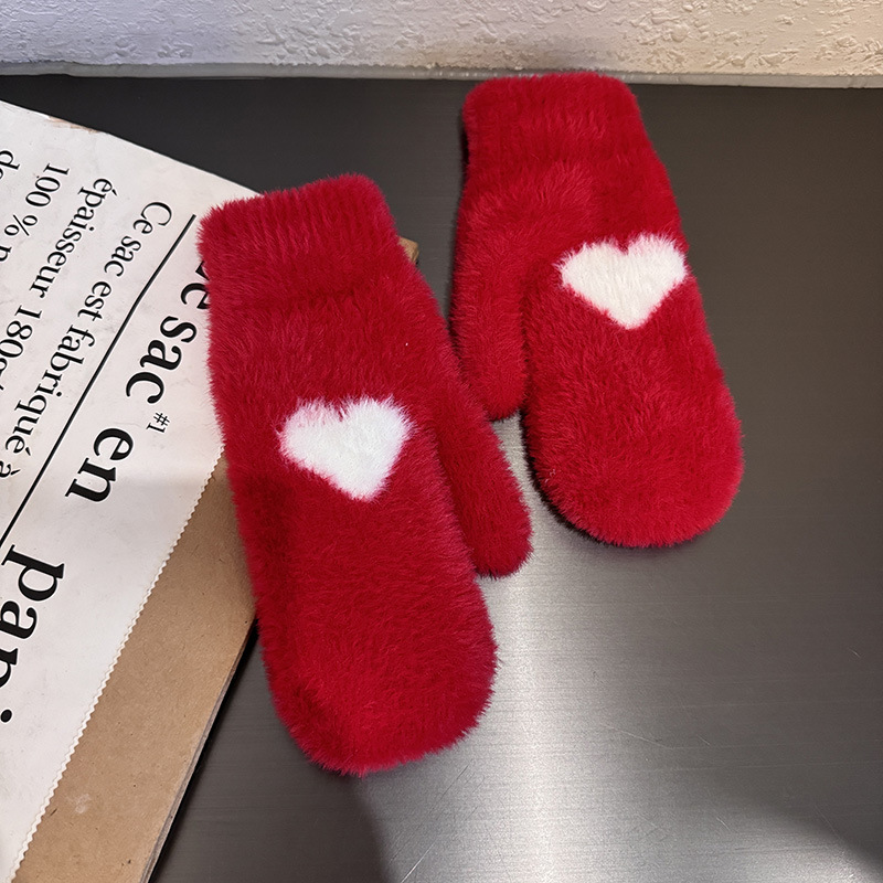 인내 감추위 장갑 여성 한국식 붉은 사랑 기모 모조 밍크 헤어 사이클링 학생용 따뜻한 장갑