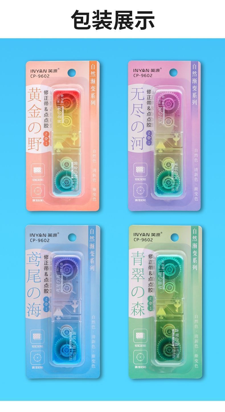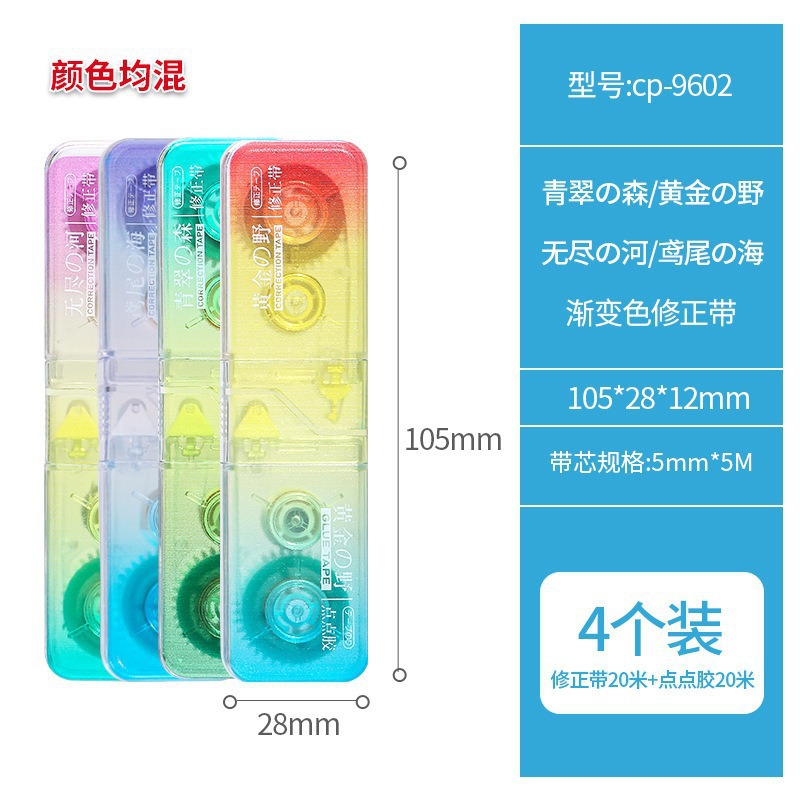 高颜值 渐变 双头修正带 创意 中小学生专用 mini 易携 10cm 修正带点点胶 双效二合一