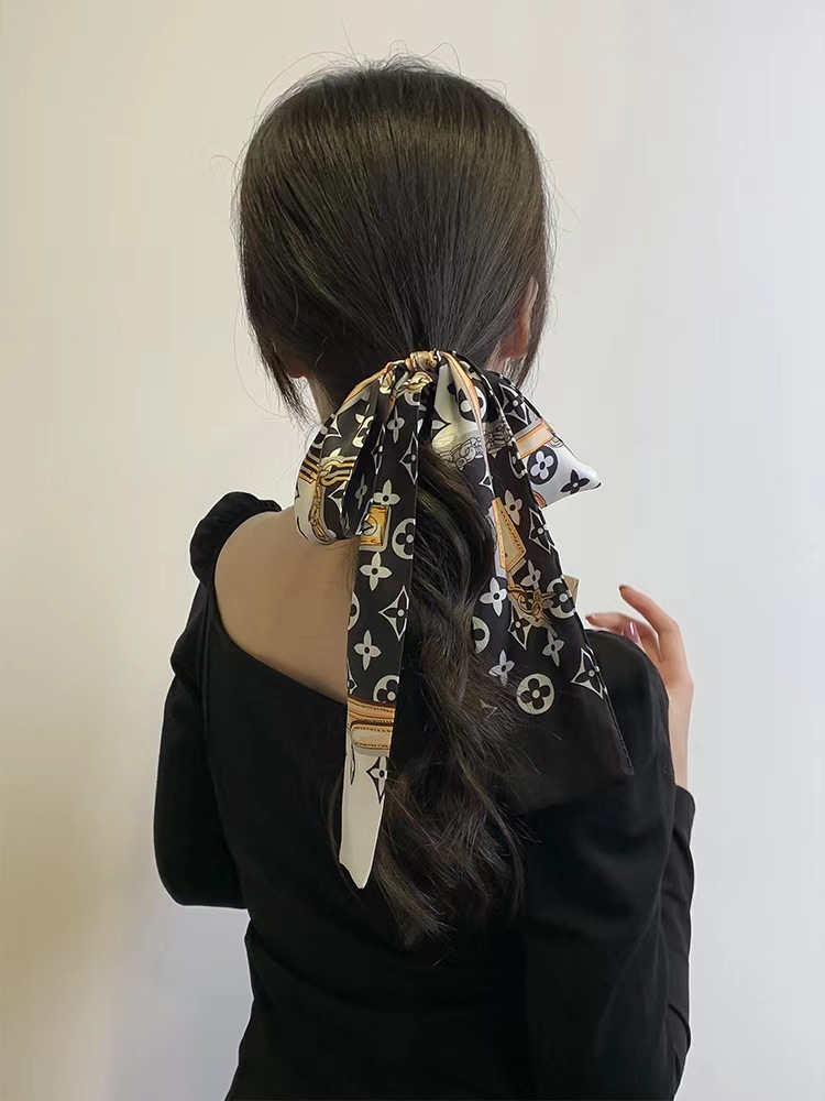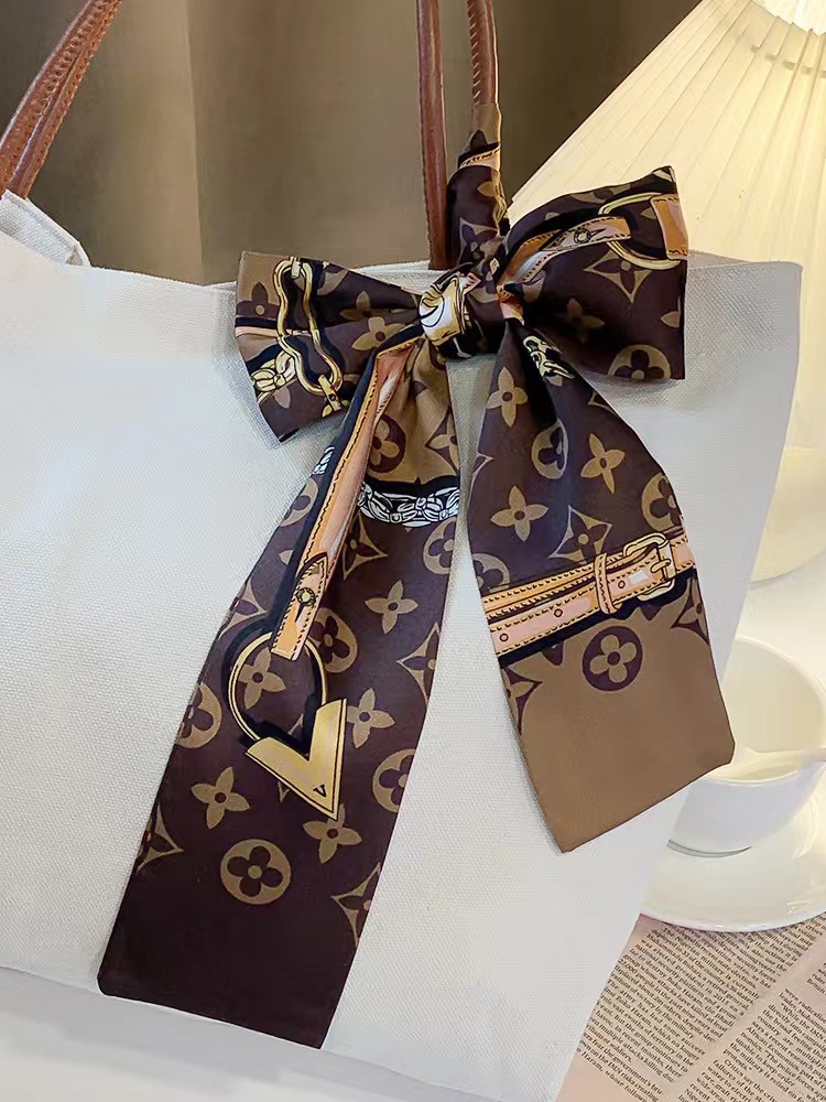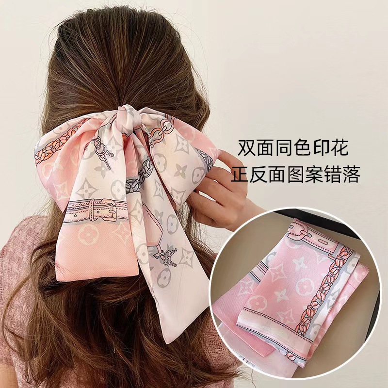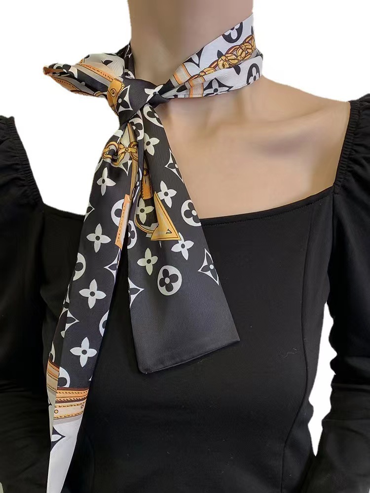 흰색과 부드러운 녹색 작은 실크 스카프 여성의 봄과 여름 좁은 줄무늬 헤어 스트랩 헤어 넥타이 가방 장식 긴 스카프스토어 가기
