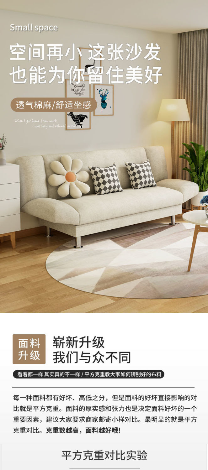 간단한 스타일 작은 신선한 스타일 접이식 직물 소파 침실 거실 게으른 스타일 작은 아파트 임대 집 게으른 소파스토어 가기