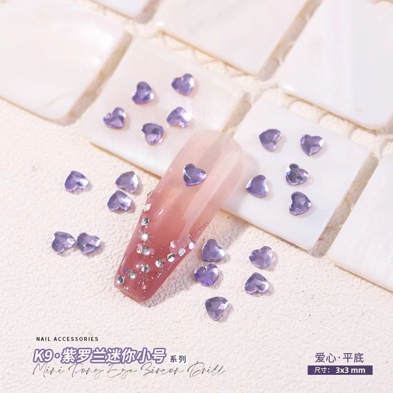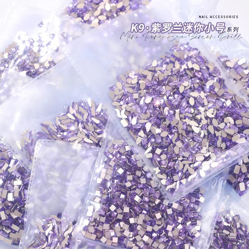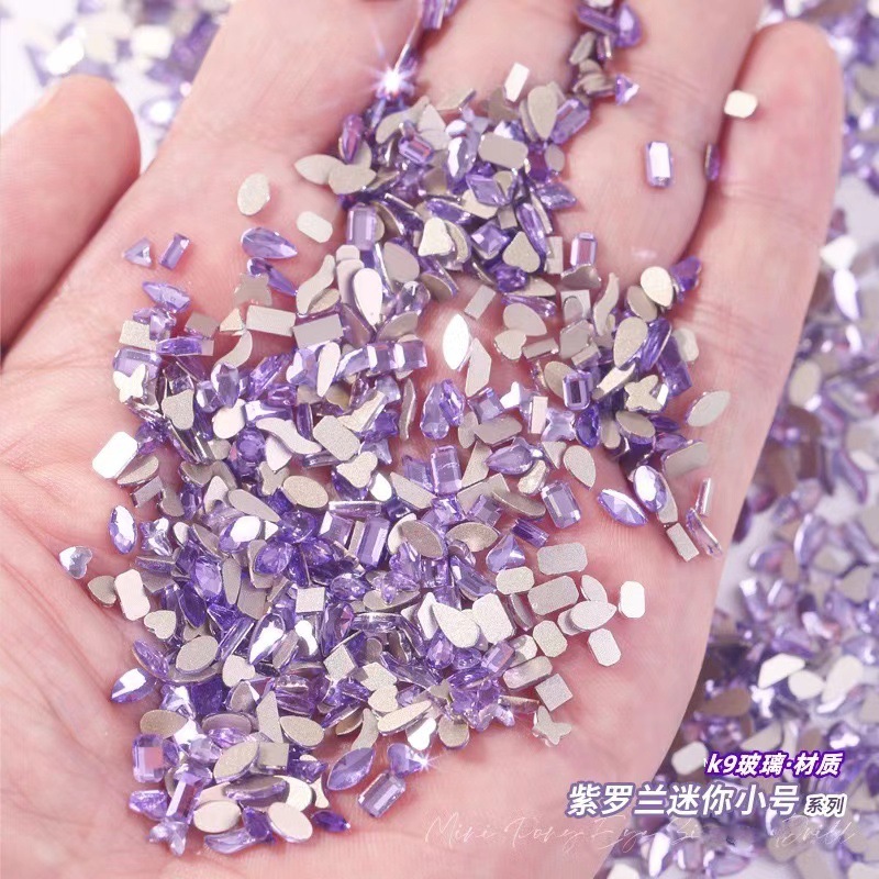 크리스탈 보라색 미니 스몰 사이즈 평면 모양의 다이아몬드 보라색 물방울 사랑 다이아몬드 네일 유리 네일 쥬얼리 도매스토어 가기