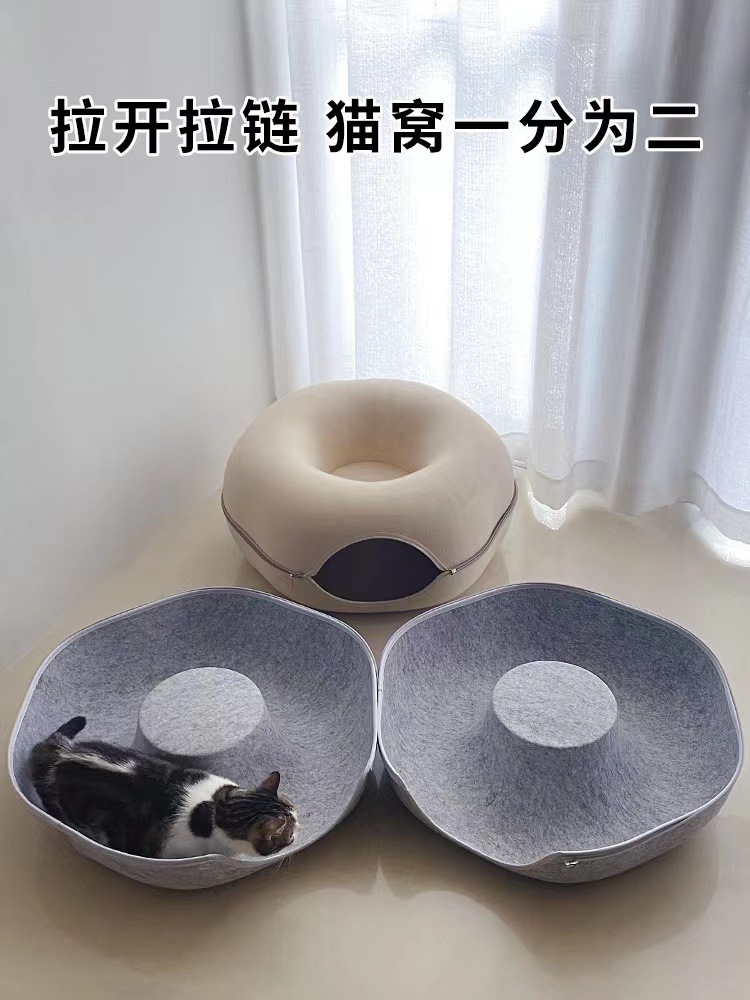 국경 간 도매 도넛 펠트 고양이 둥지 겨울 따뜻한 폐쇄 고양이 터널 회피 하우스 사계절 유니버설 고양이 둥지스토어 가기