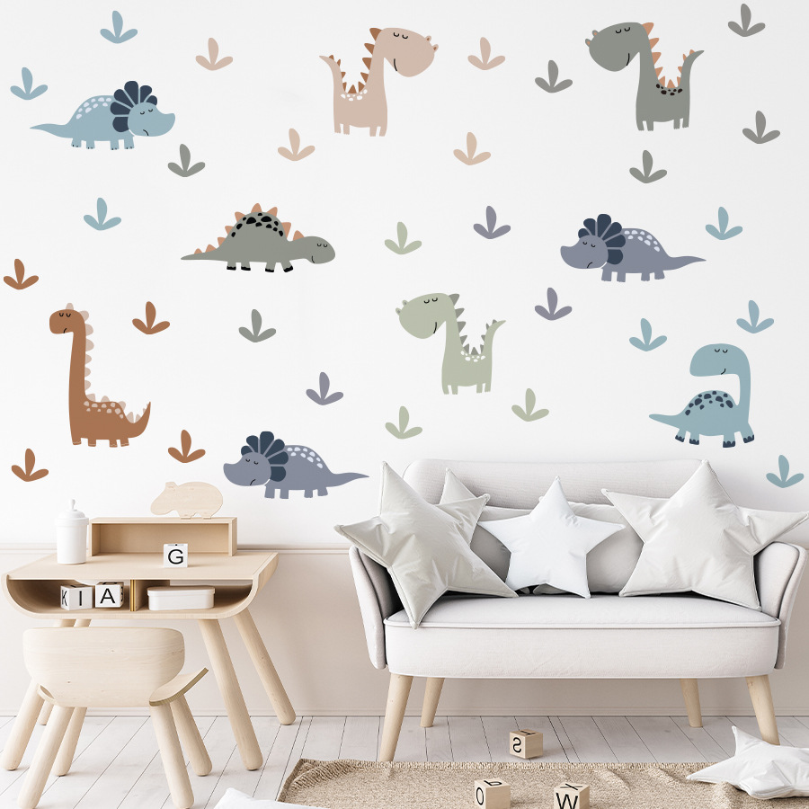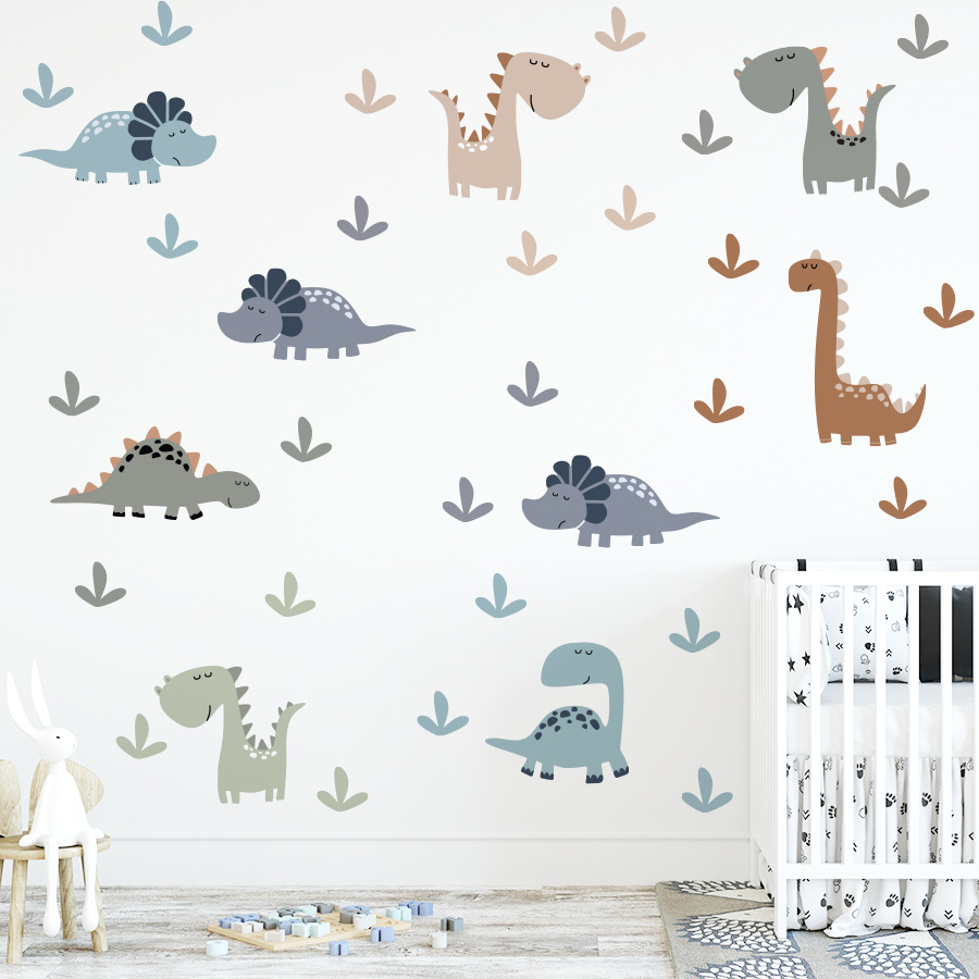 만화 귀여운 작은 공룡 자기 접착 벽 스티커 간단한 스타일 어린이 방 배경 벽 장식 스티커 ZN3065F
