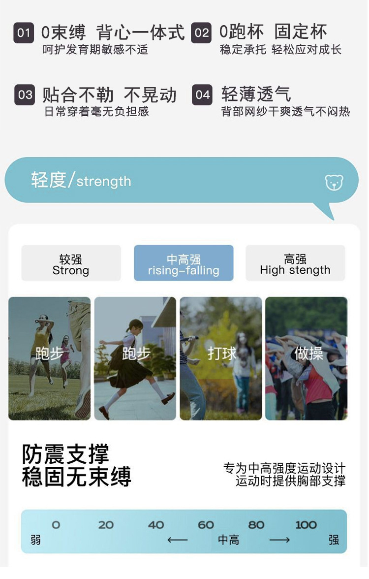 고등학교 학생 스포츠 충격 방지 조끼 사춘기 브래지어 여성 통기성 공장 도매의 시작에 여자 속옷 개발스토어 가기