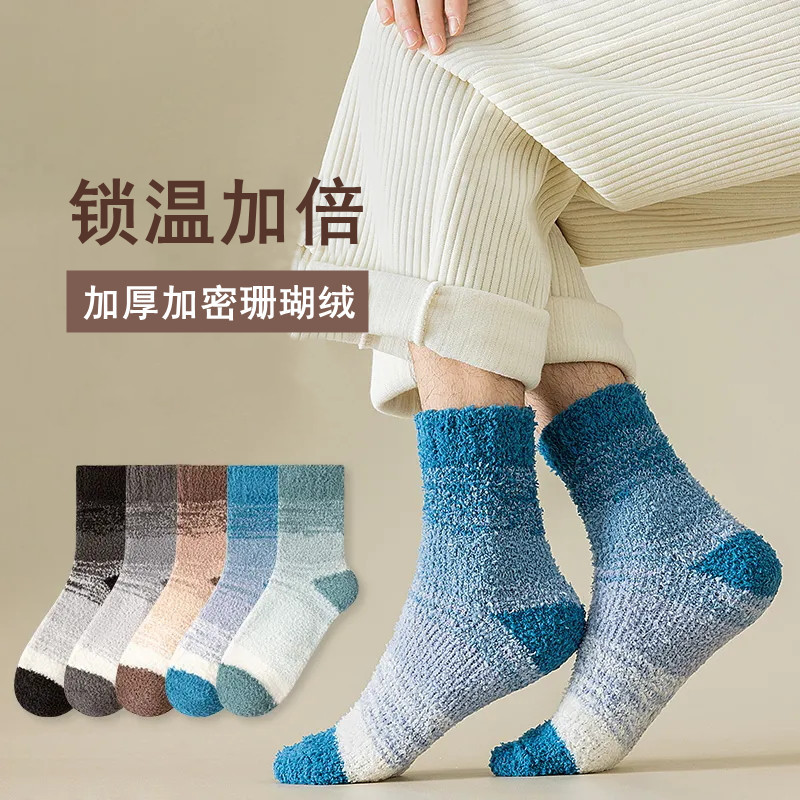 산호 벨벳 양말 남성 일본 그라데이션 따뜻한 바닥 양말 남성용 수면 양말 린트 하프 벨벳 남성용 양말스토어 가기