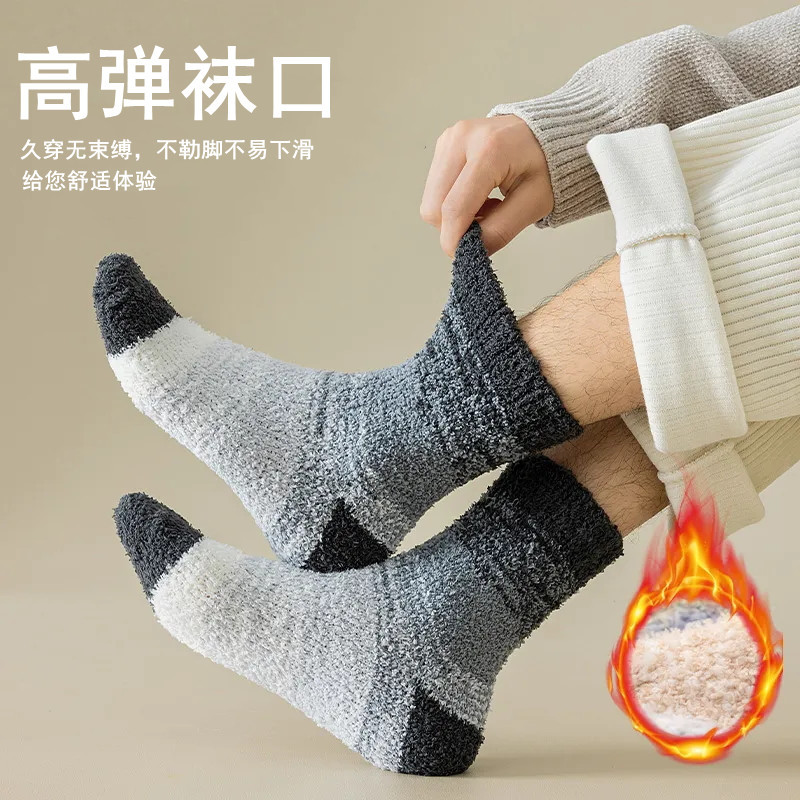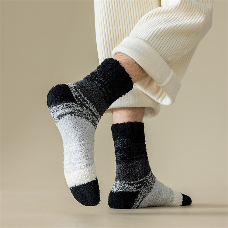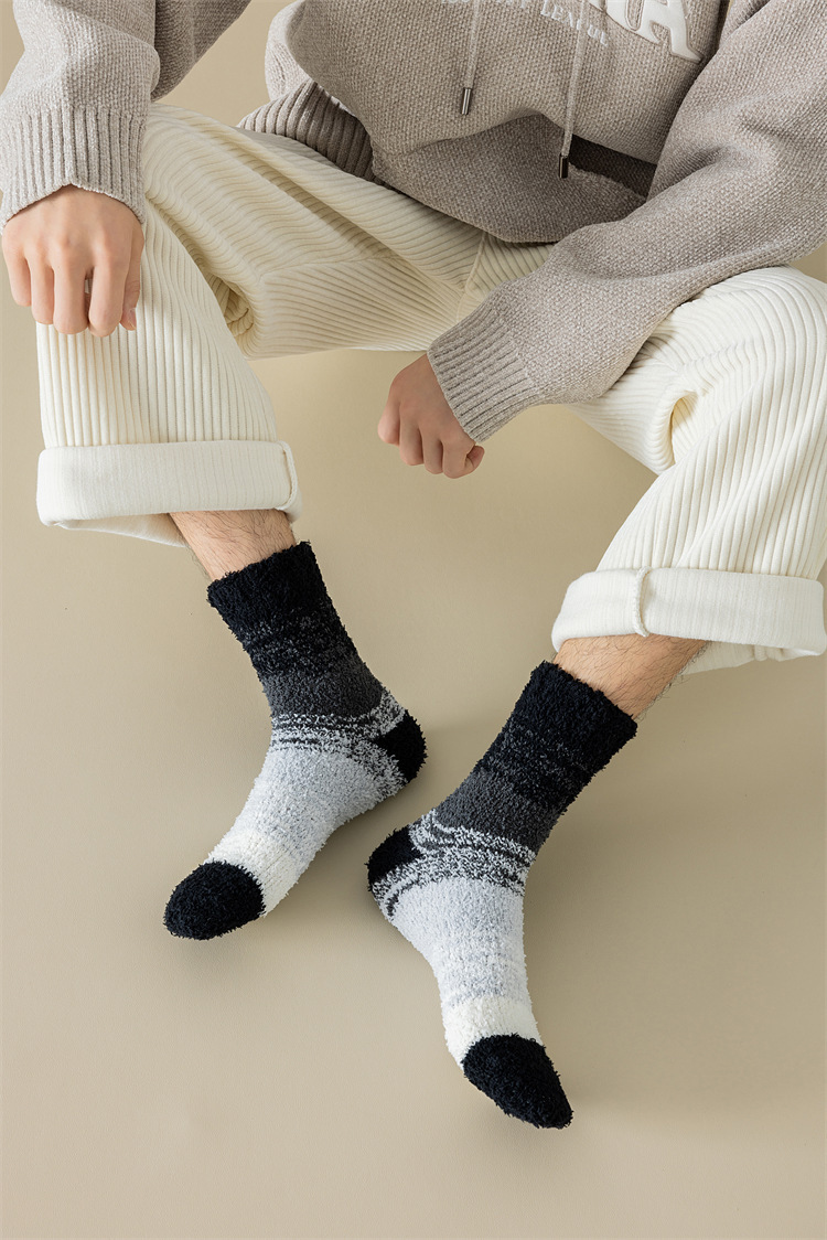 산호 벨벳 양말 남성 일본 그라데이션 따뜻한 바닥 양말 남성용 수면 양말 린트 하프 벨벳 남성용 양말
