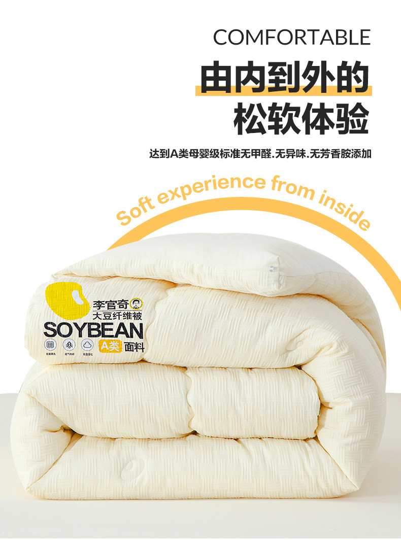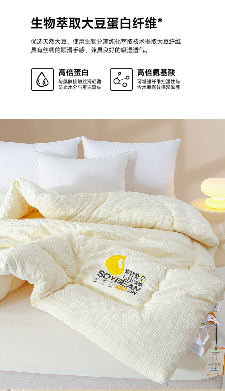 정품 Li Guanqi 55% 콩 섬유 이불 클래스 A 와플러 봄과 가을 이불 두꺼운 따뜻한 겨울 이불 콩 이불