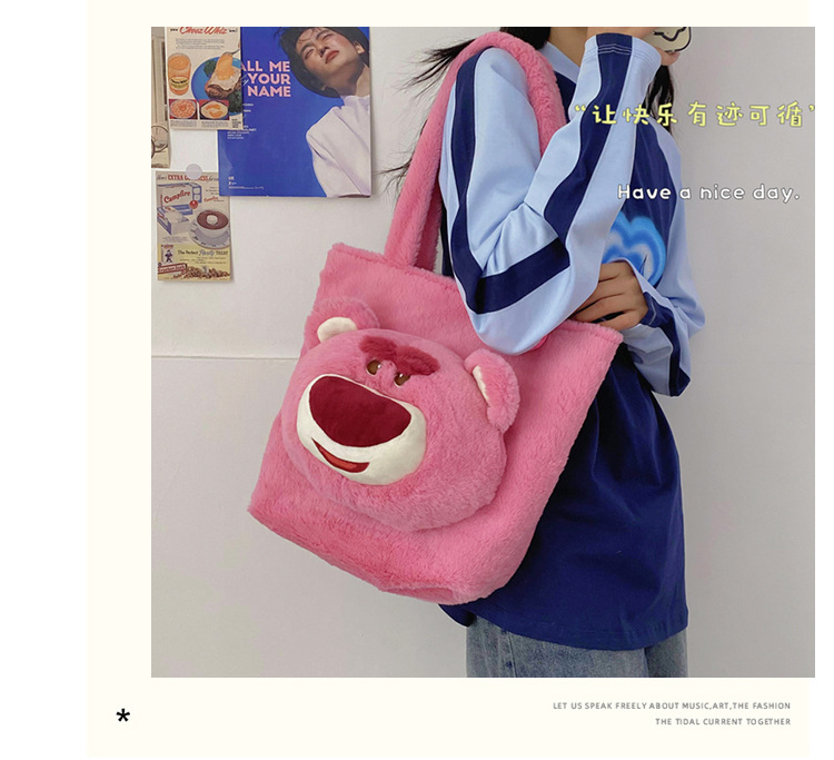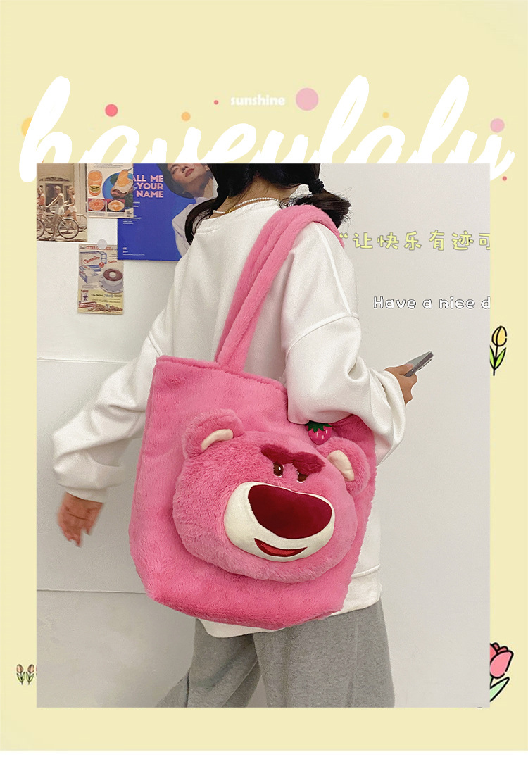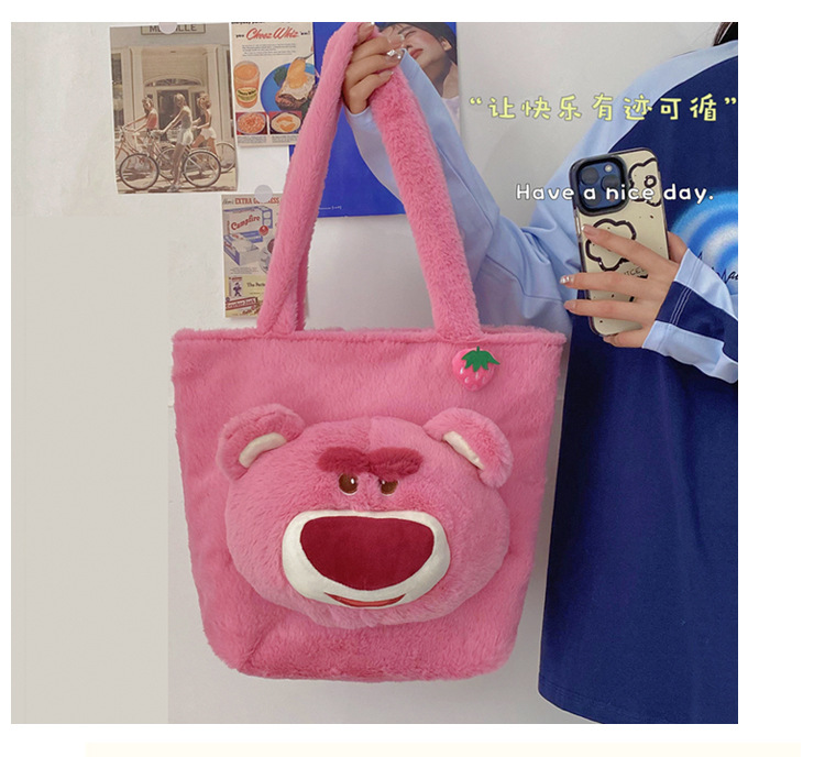 부드러운 귀여운 딸기 곰 가방 여성 패션 가을과 겨울 새로운 만화 모피 어깨 핸드백 마오 마오 가방스토어 가기
