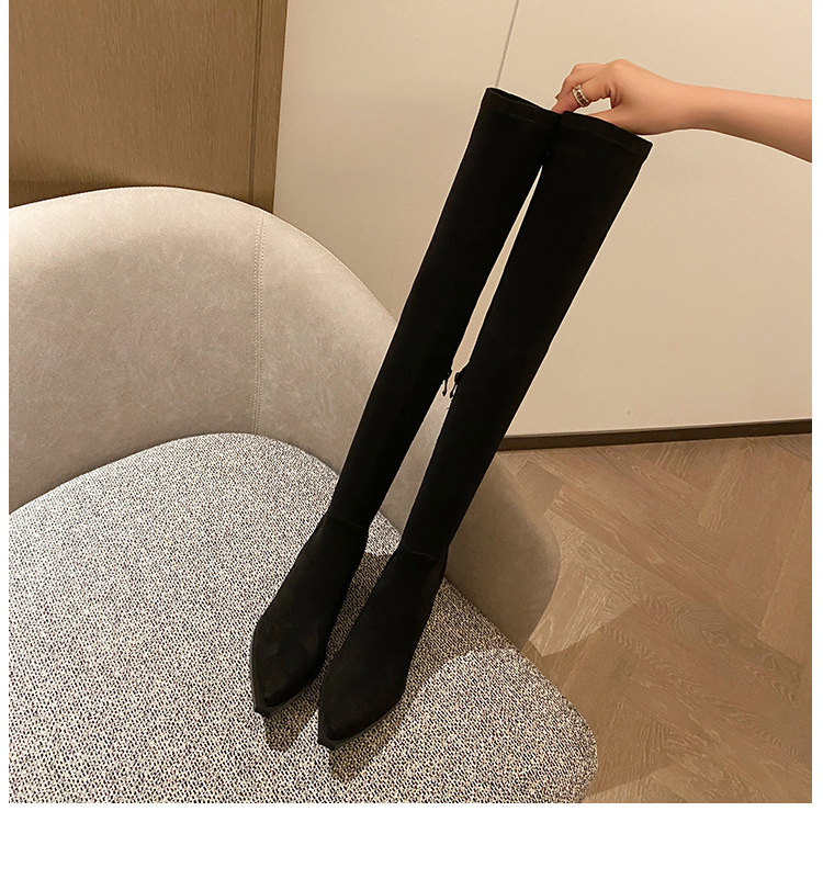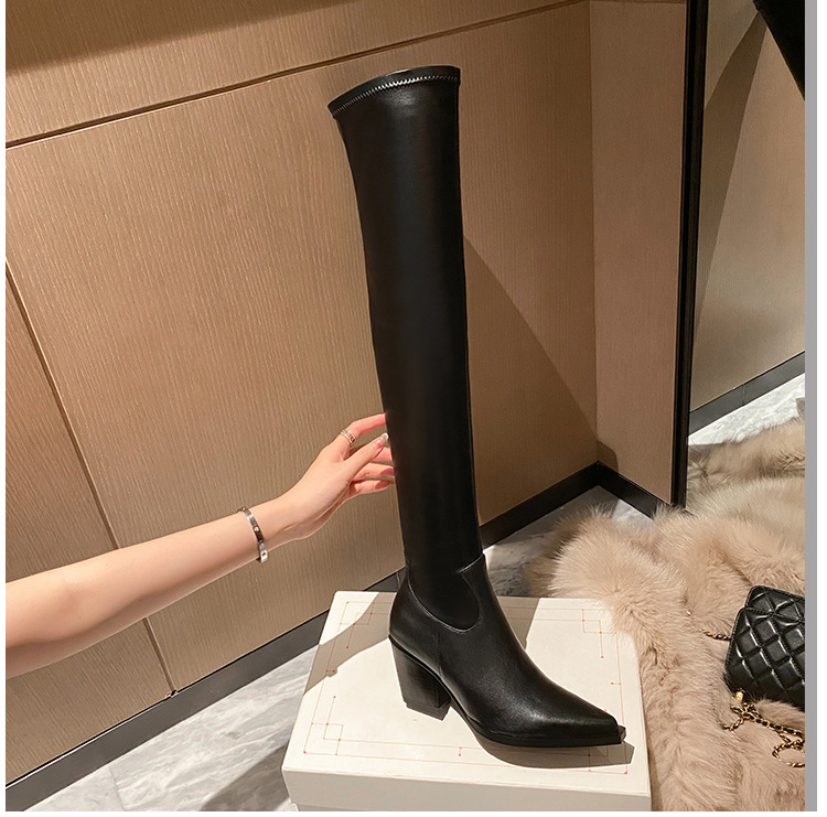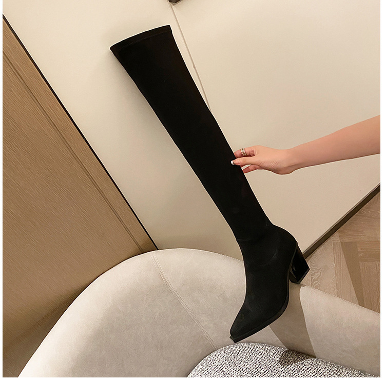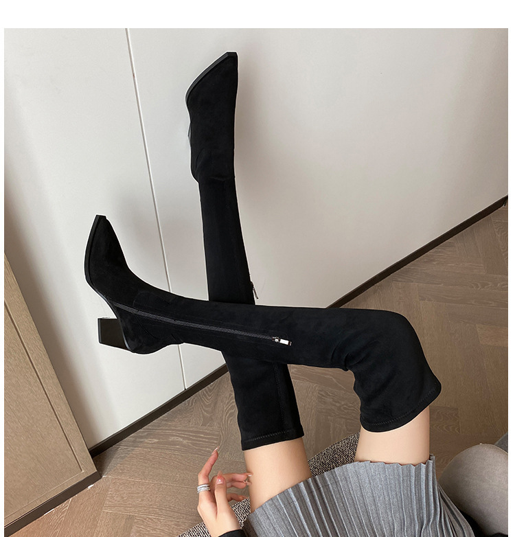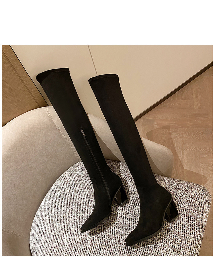 블랙 오버 더 무릎 부츠 여성용 하이힐 통통녀 특허 가죽 두꺼운 다리 포인트 발가락 대형 튜브 스웨이드 부츠스토어 가기